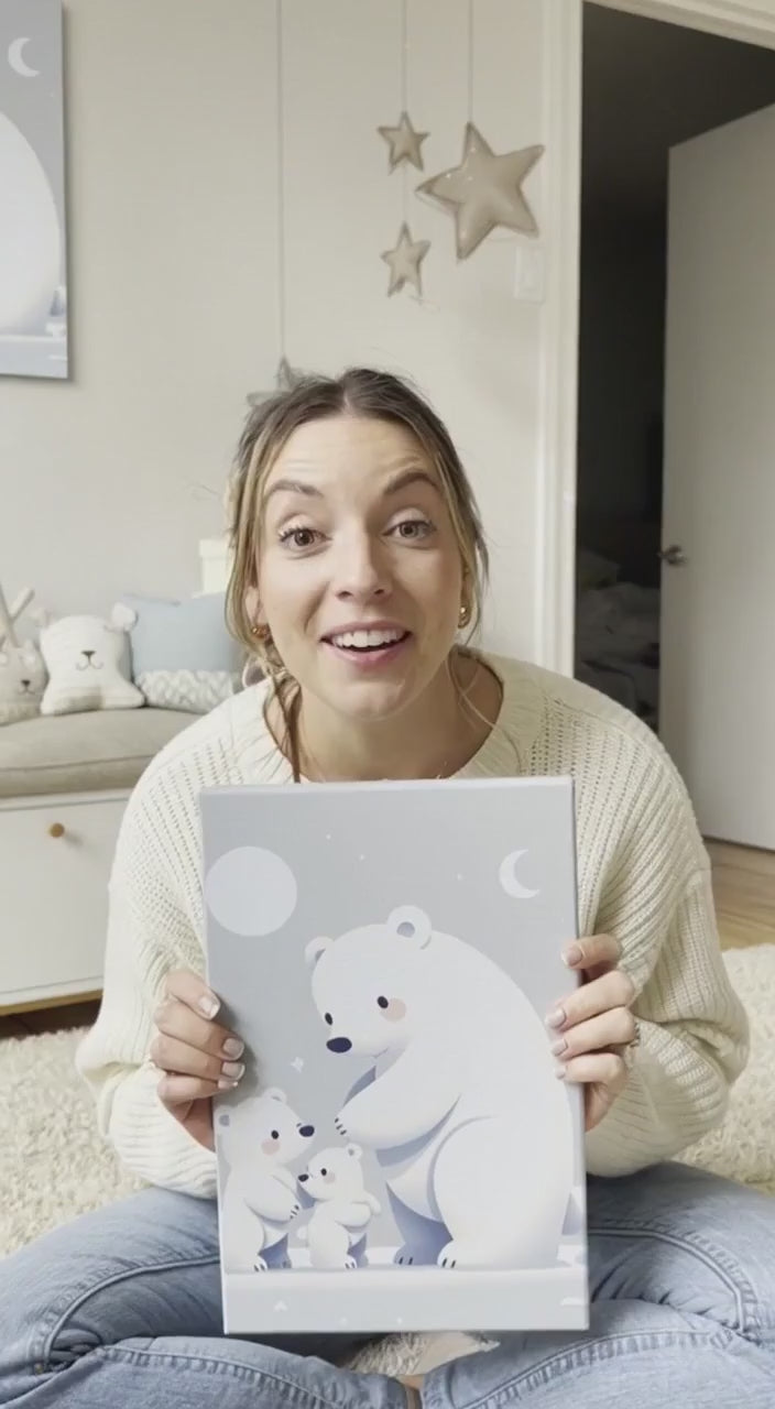 Wrap your child’s space in warmth with Arctic Embrace – Family Bond, a heartwarming canvas print featuring a loving polar bear family. This enchanting piece captures the gentle bond between parent and cubs in a peaceful Arctic setting, making it a perfect addition to nurseries, playrooms, or any child’s space.