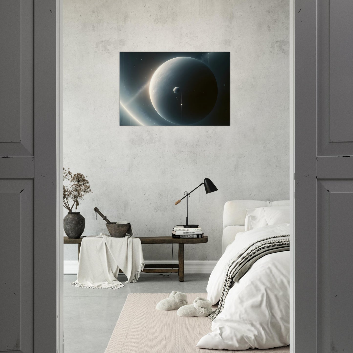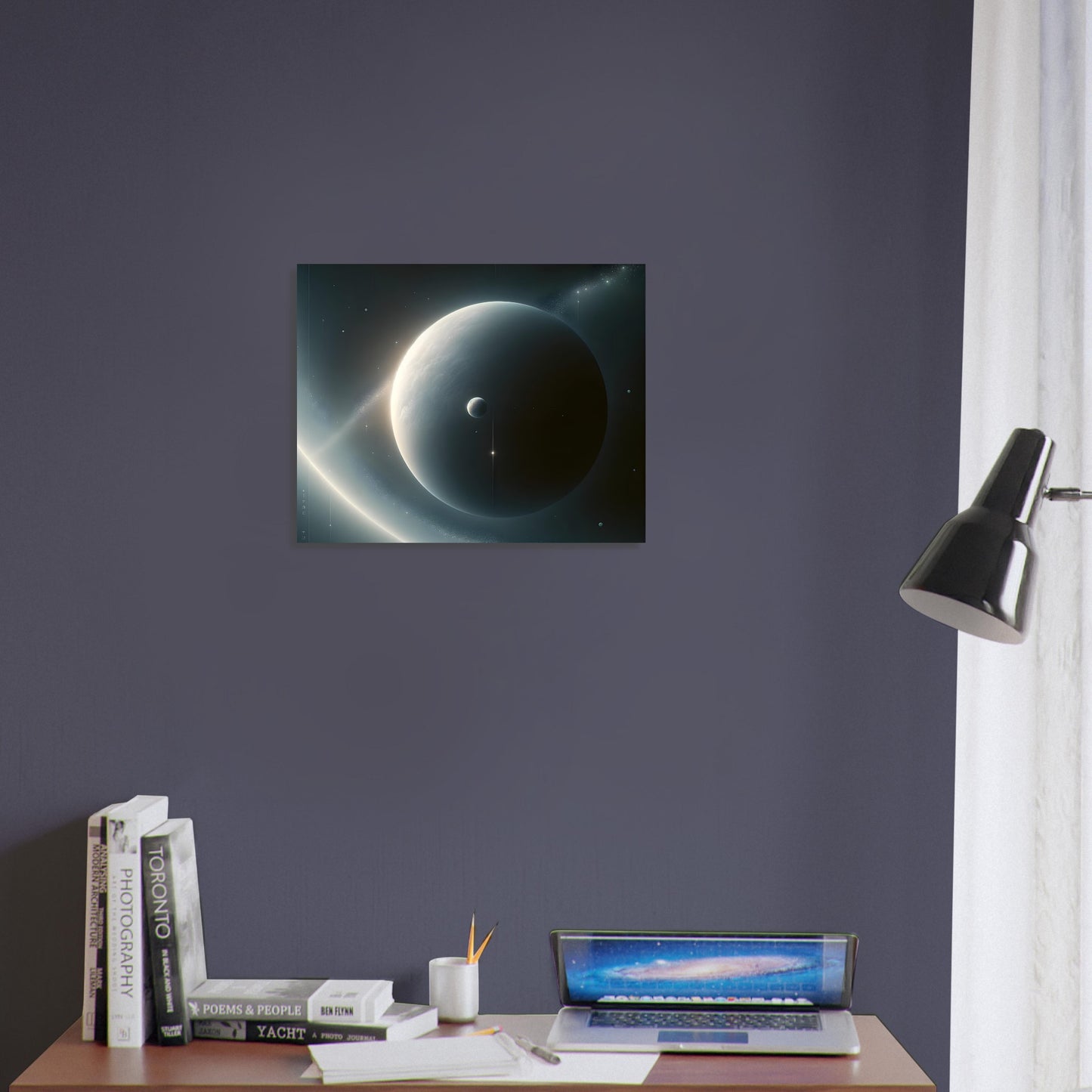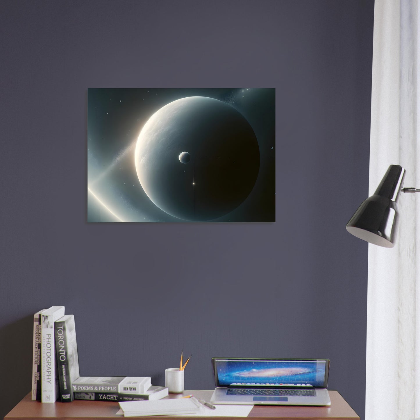 Ideal for those drawn to minimalist space art and celestial calm.