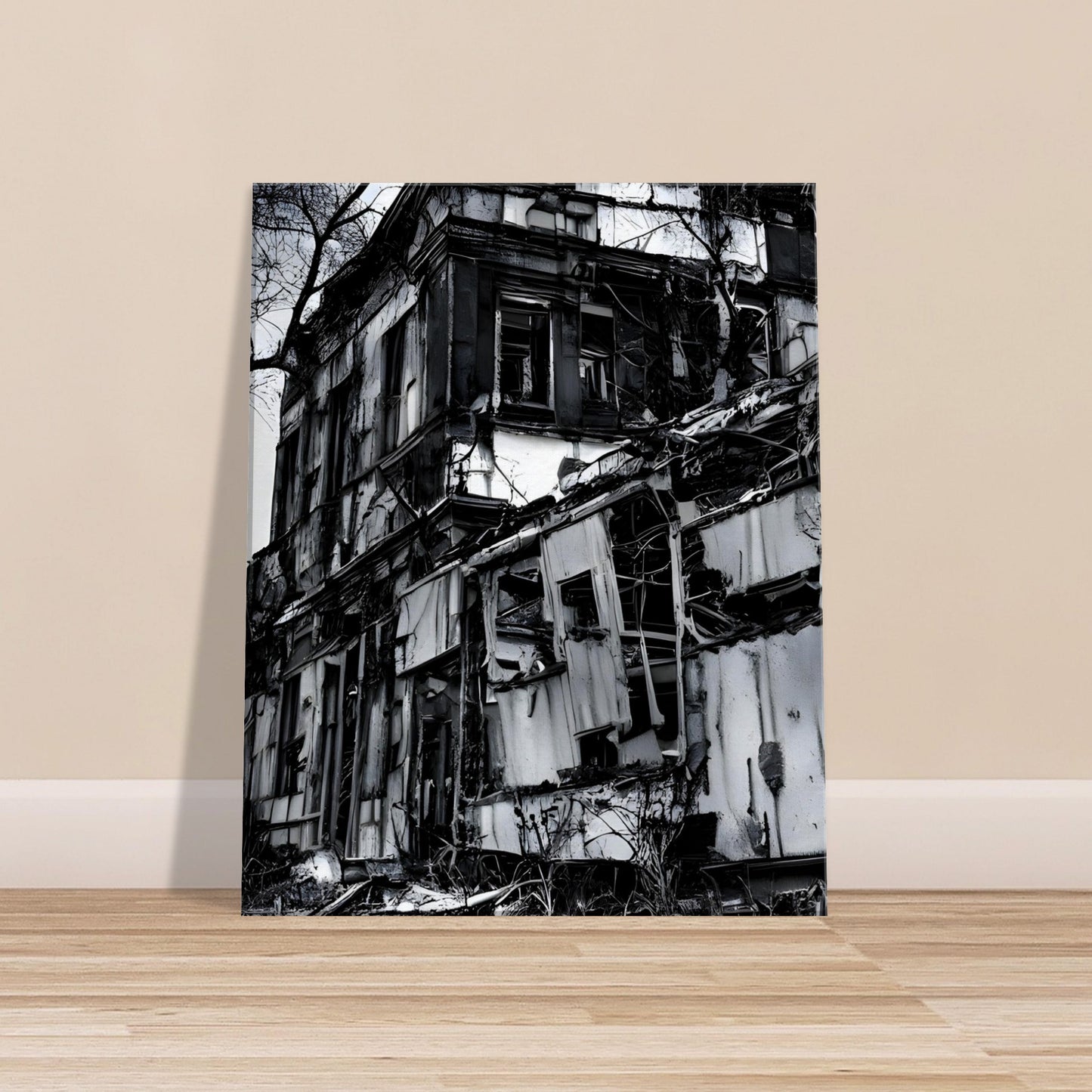Discover the stark beauty of abandonment with "Derelict Building", a powerful black and white canvas that captures the haunting elegance of urban decay. This evocative piece features the skeletal ruins of a once-proud structure, its cracked walls and shattered windows telling silent stories of time, neglect, and change.