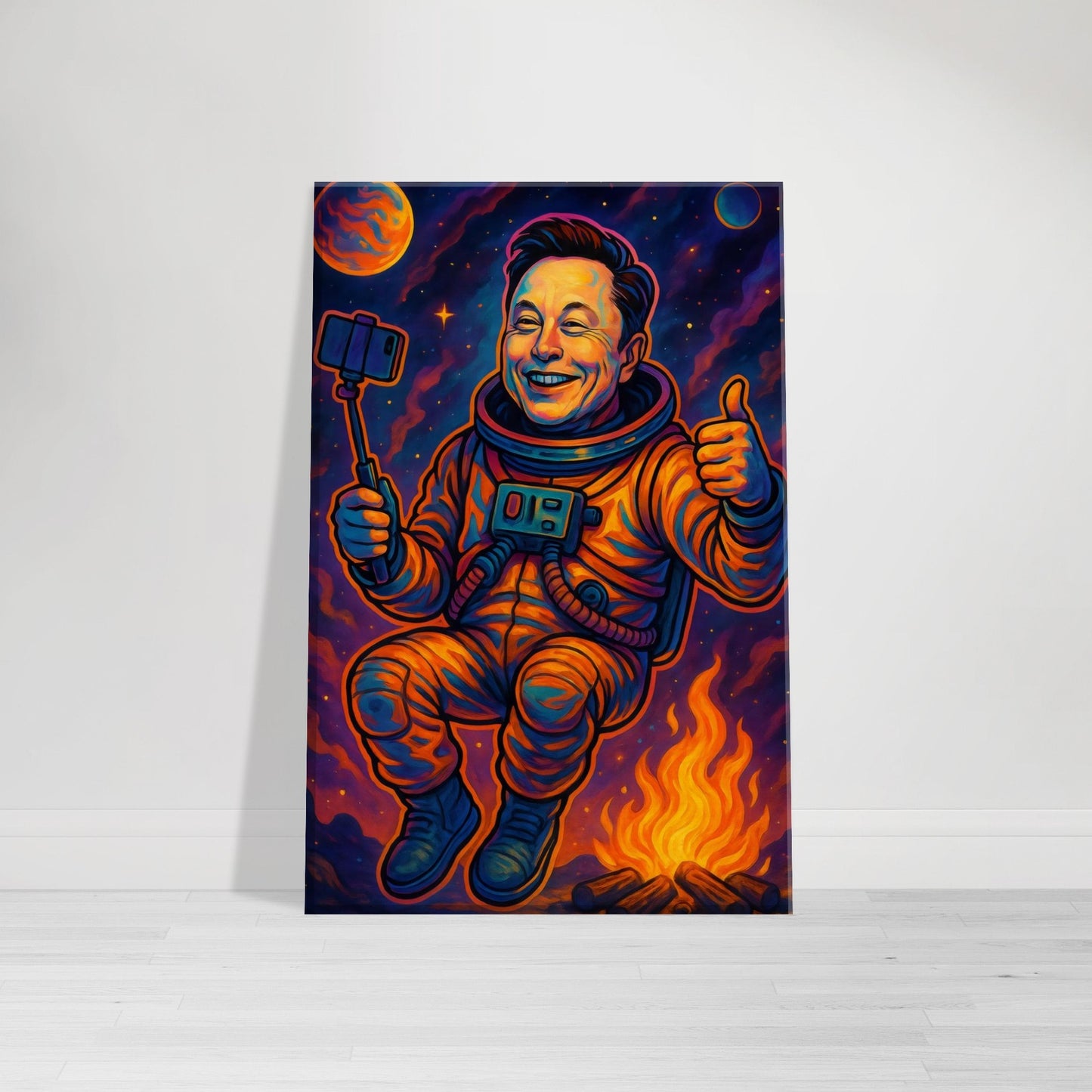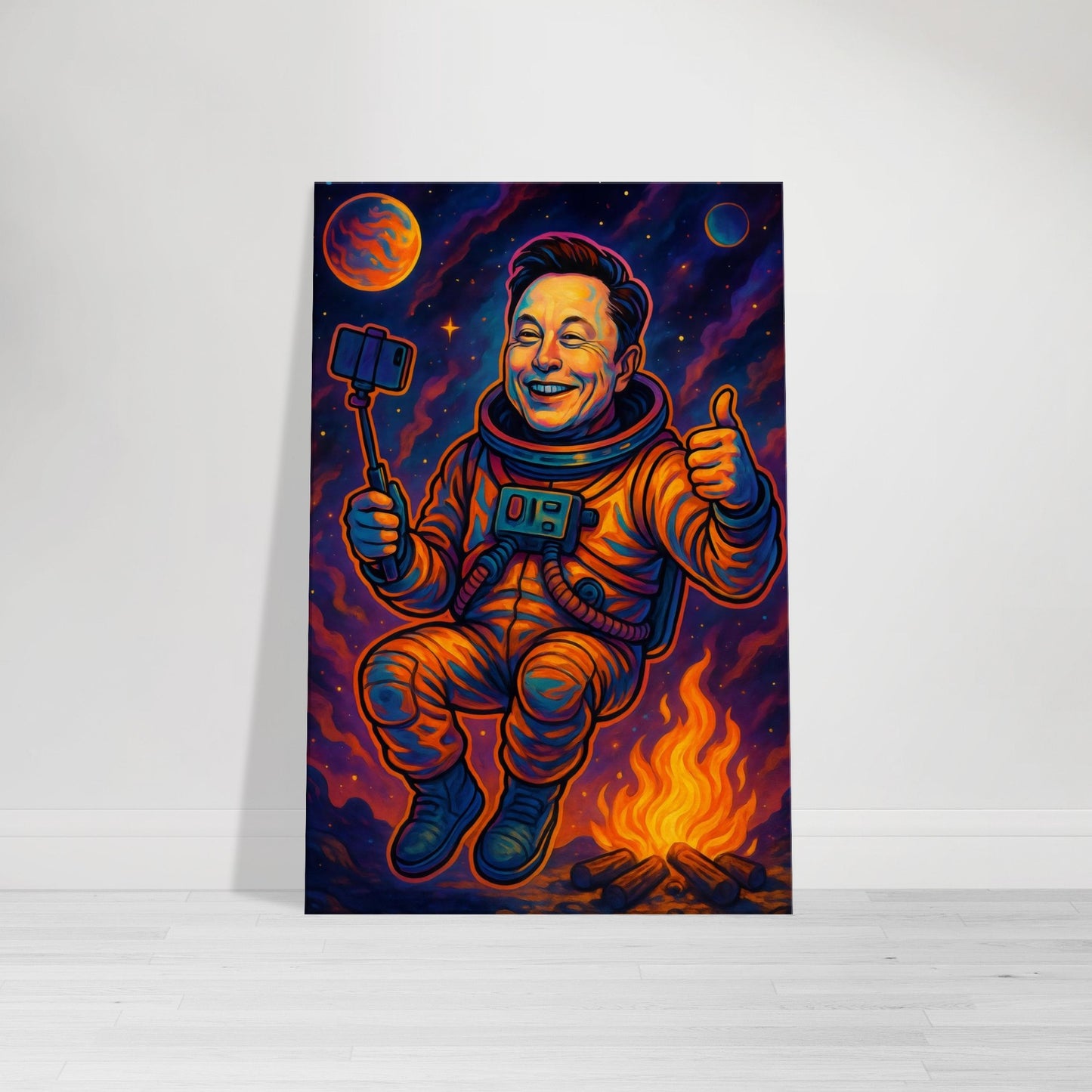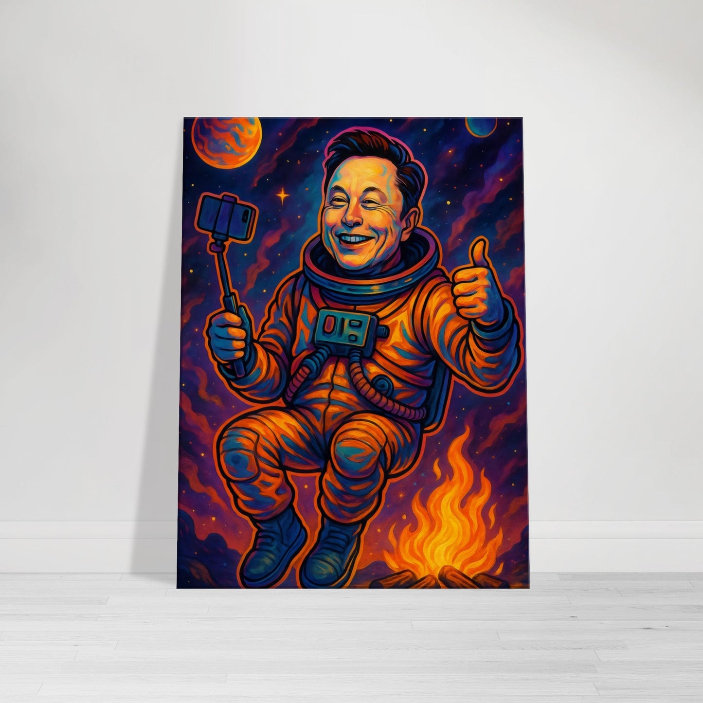 When Earth isn’t enough, Elon goes orbital — and takes the internet with him. In “Selfie from the Stars,” the man behind rockets and memes floats through a cosmic swirl in full neon spacesuit, grinning, thumbs-up, and snapping a selfie mid-galaxy.