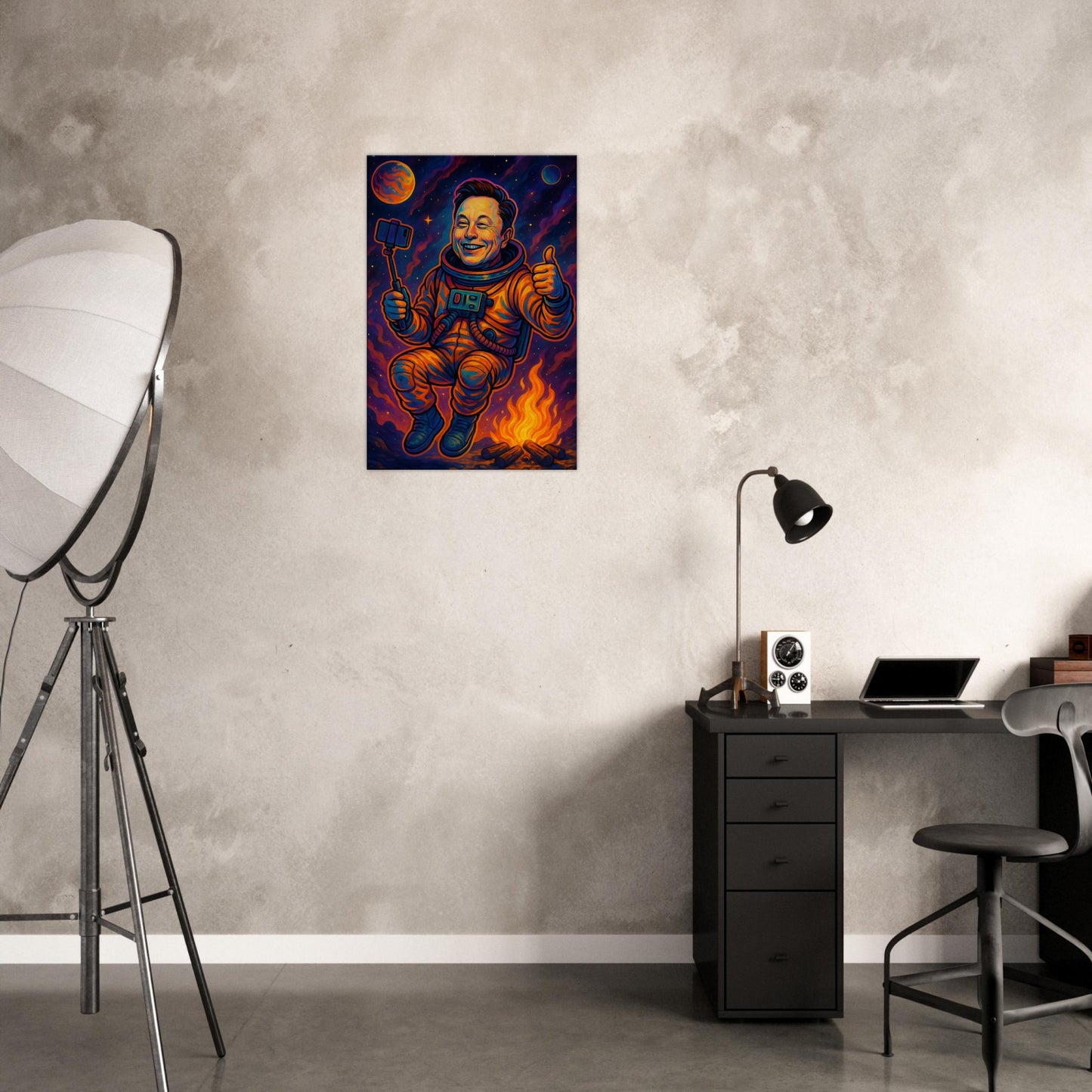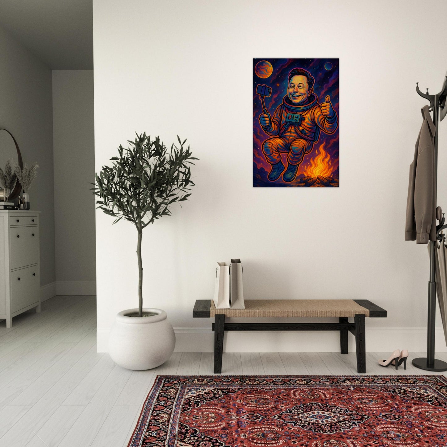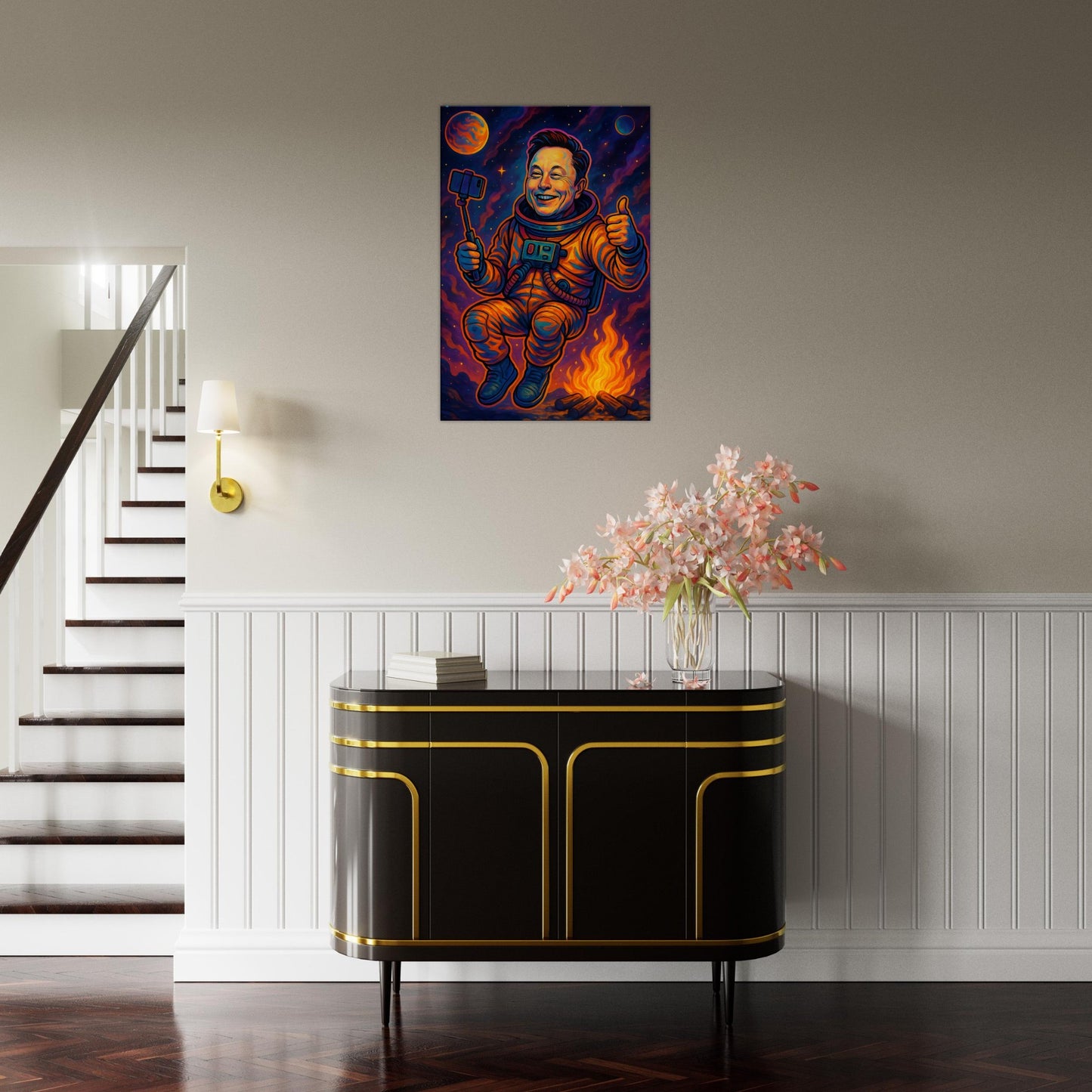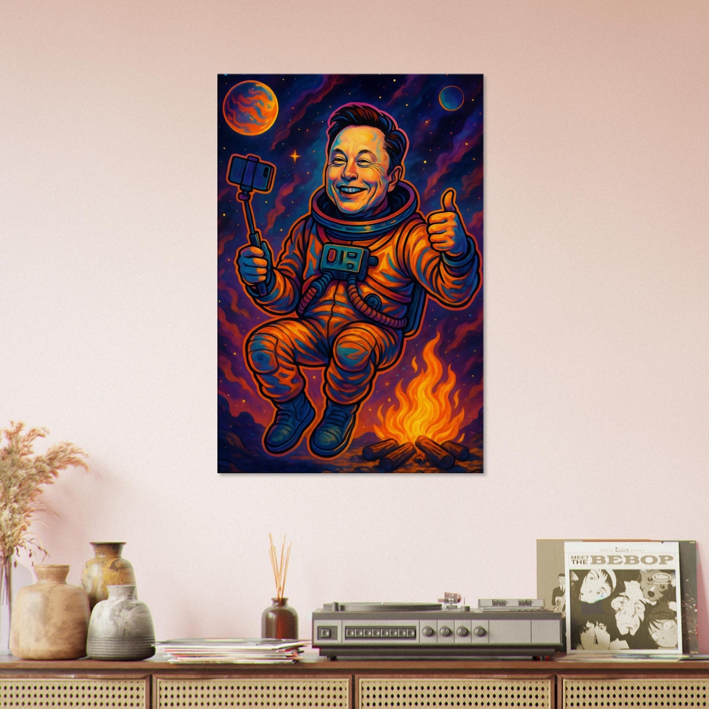 When Earth isn’t enough, Elon goes orbital — and takes the internet with him. In “Selfie from the Stars,” the man behind rockets and memes floats through a cosmic swirl in full neon spacesuit, grinning, thumbs-up, and snapping a selfie mid-galaxy.
