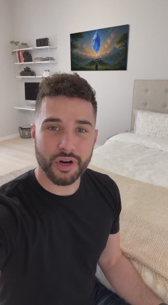 A breathtaking vision of high fantasy, Eternal Crystal Nexus captures the awe of standing before the divine. A colossal crystalline monolith floats above an ancient shrine, radiating beams of sapphire and amethyst light that ripple across a golden sunset sky. Mist rises from distant mountains while a lone adventurer gazes upward in reverence, sword in hand. This artwork evokes mystery, wonder, and destiny, a centerpiece for collectors and dreamers alike, designed to transform any space into a gateway to the extraordinary.