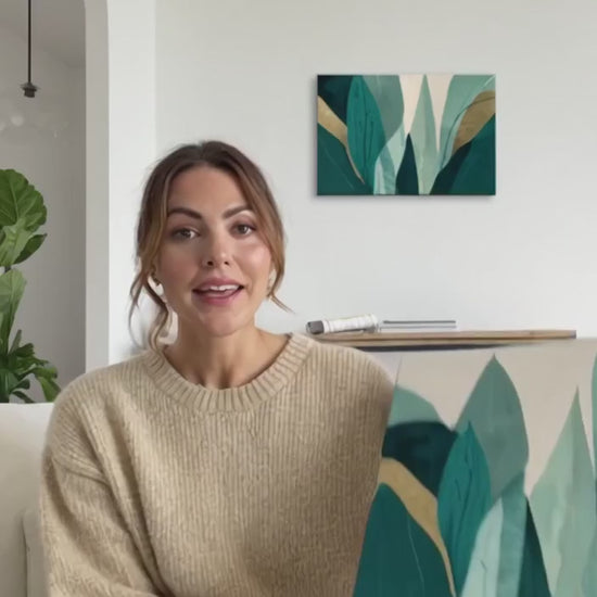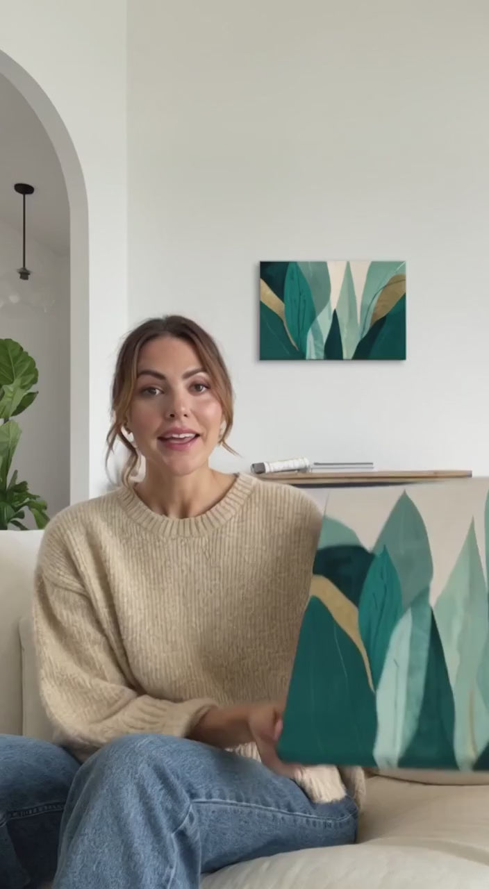 “Faded Canopy Stillness” captures the delicate hush of nature through soft, upward botanical silhouettes veiled beneath gentle gradients of sage, cream, mint, and moss. The subtle fading effect creates a calm, meditative visual rhythm, reminiscent of leaves dissolving into early morning light. Its muted palette and refined negative space offer a sophisticated balance between structure and serenity, ideal for interiors seeking a minimal yet organic statement.