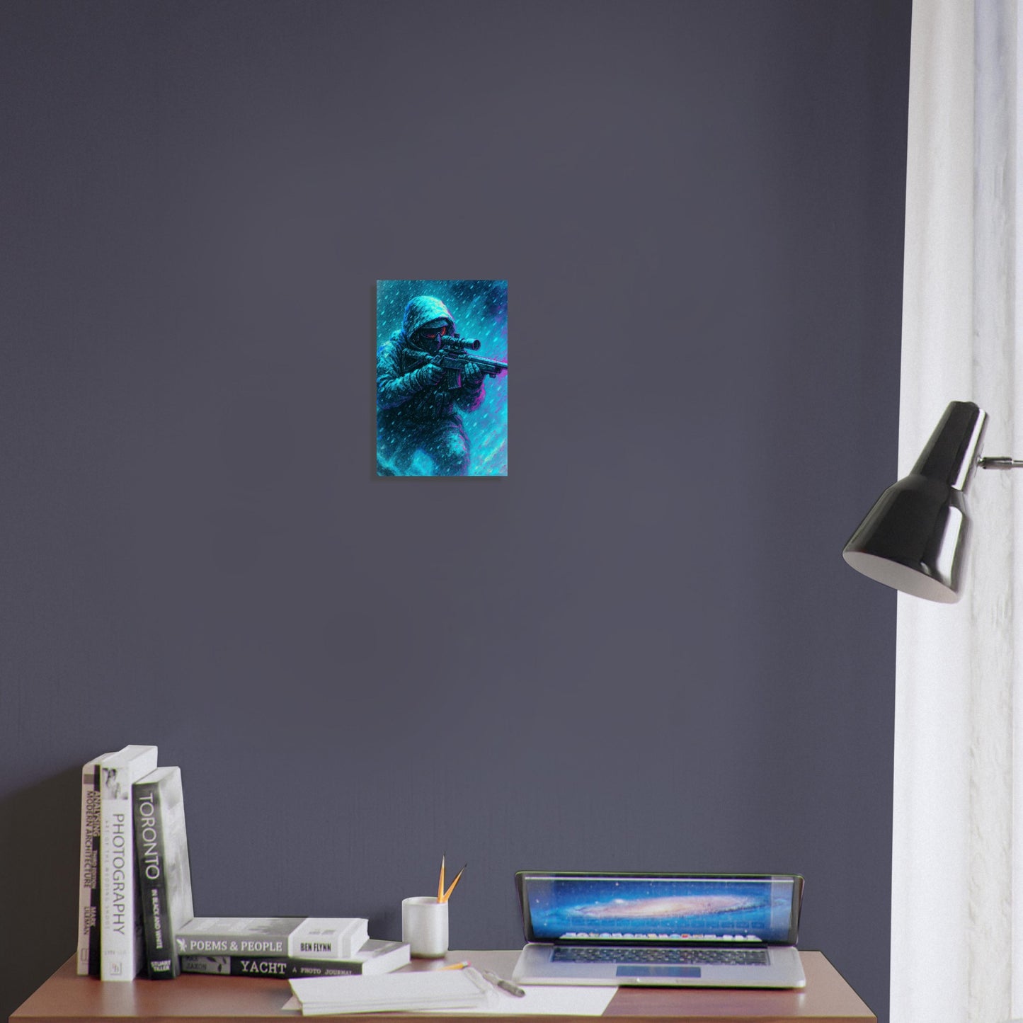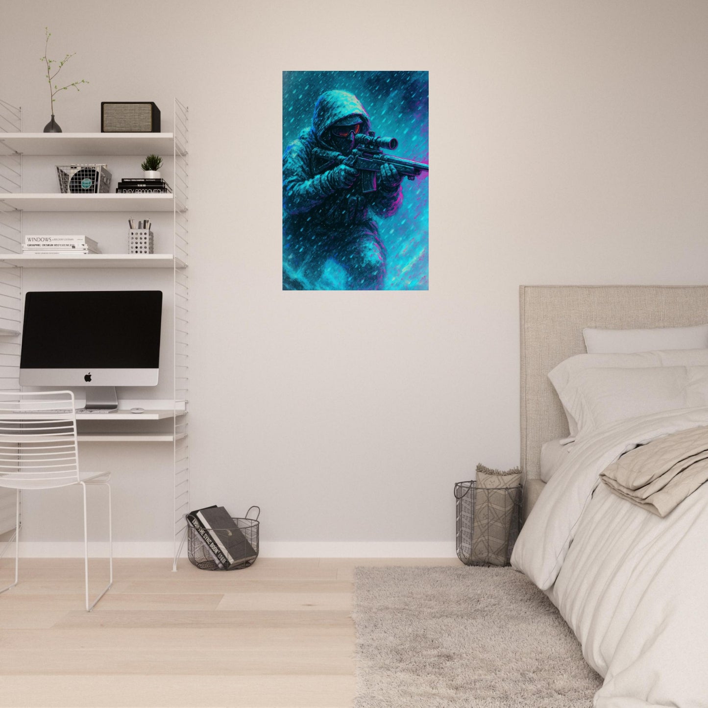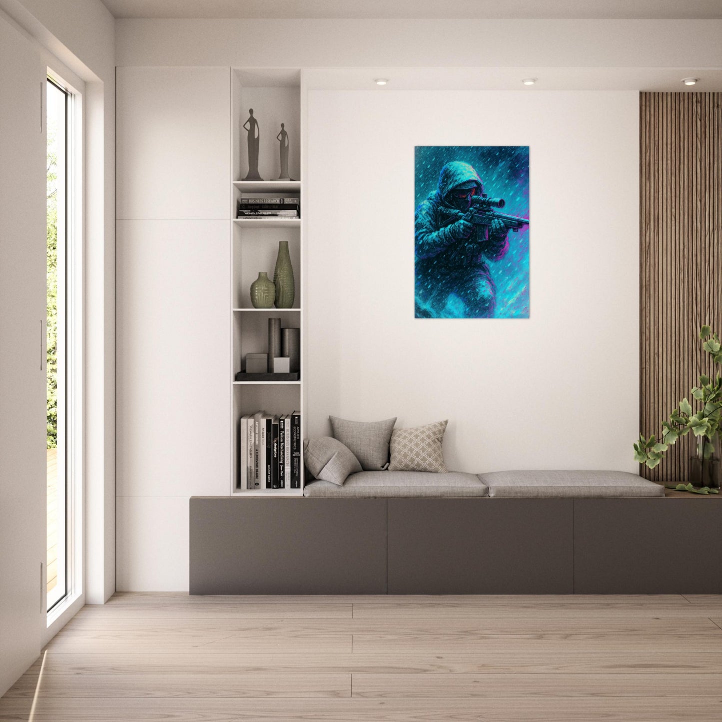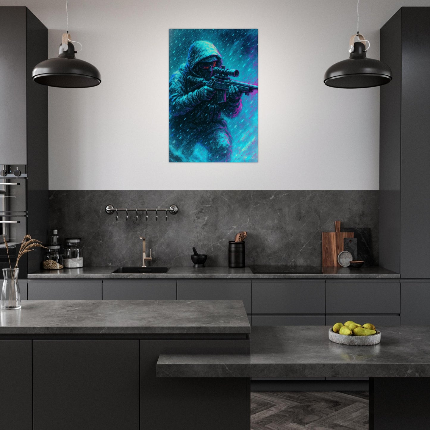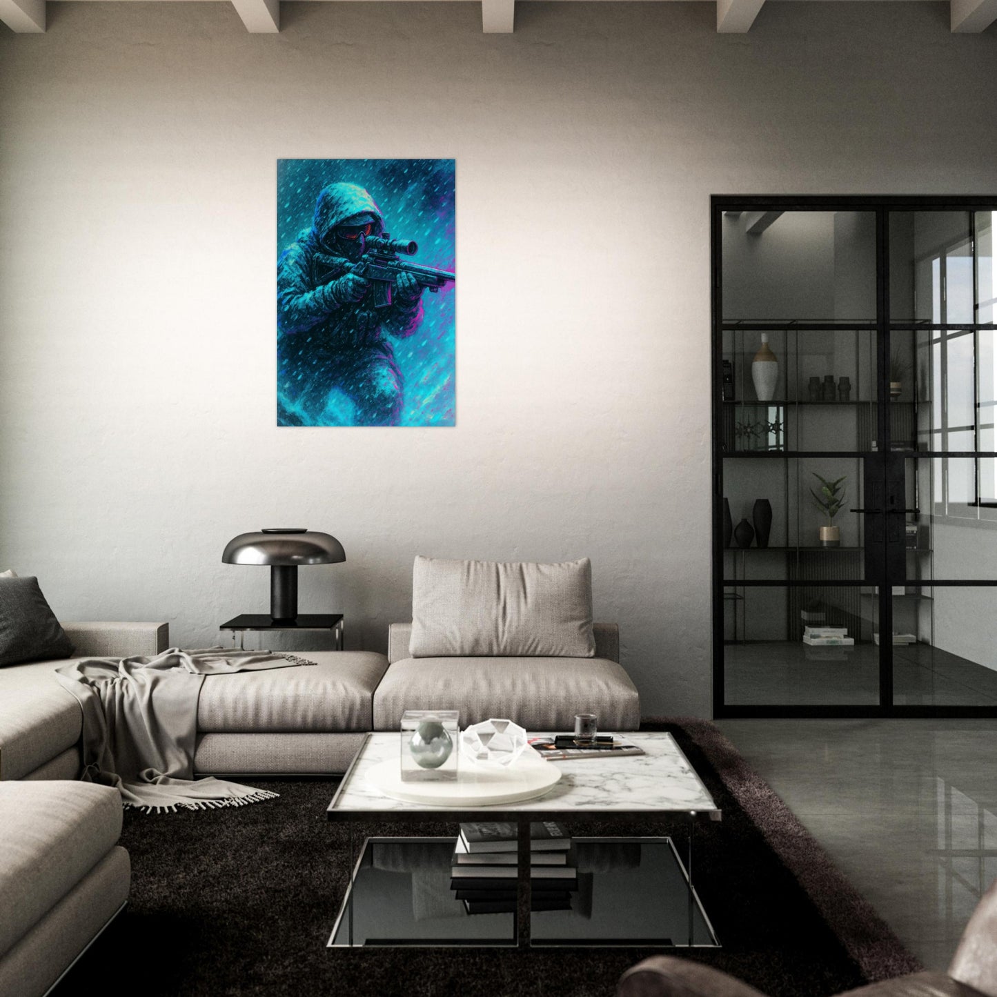 Rendered with hyper-focused contrast and cinematic tension, this metal poster merges stealth, style, and winter warfare into a piece built for impact. Ideal for tactical art collectors, sniper fans, and anyone who appreciates precision in chaos.