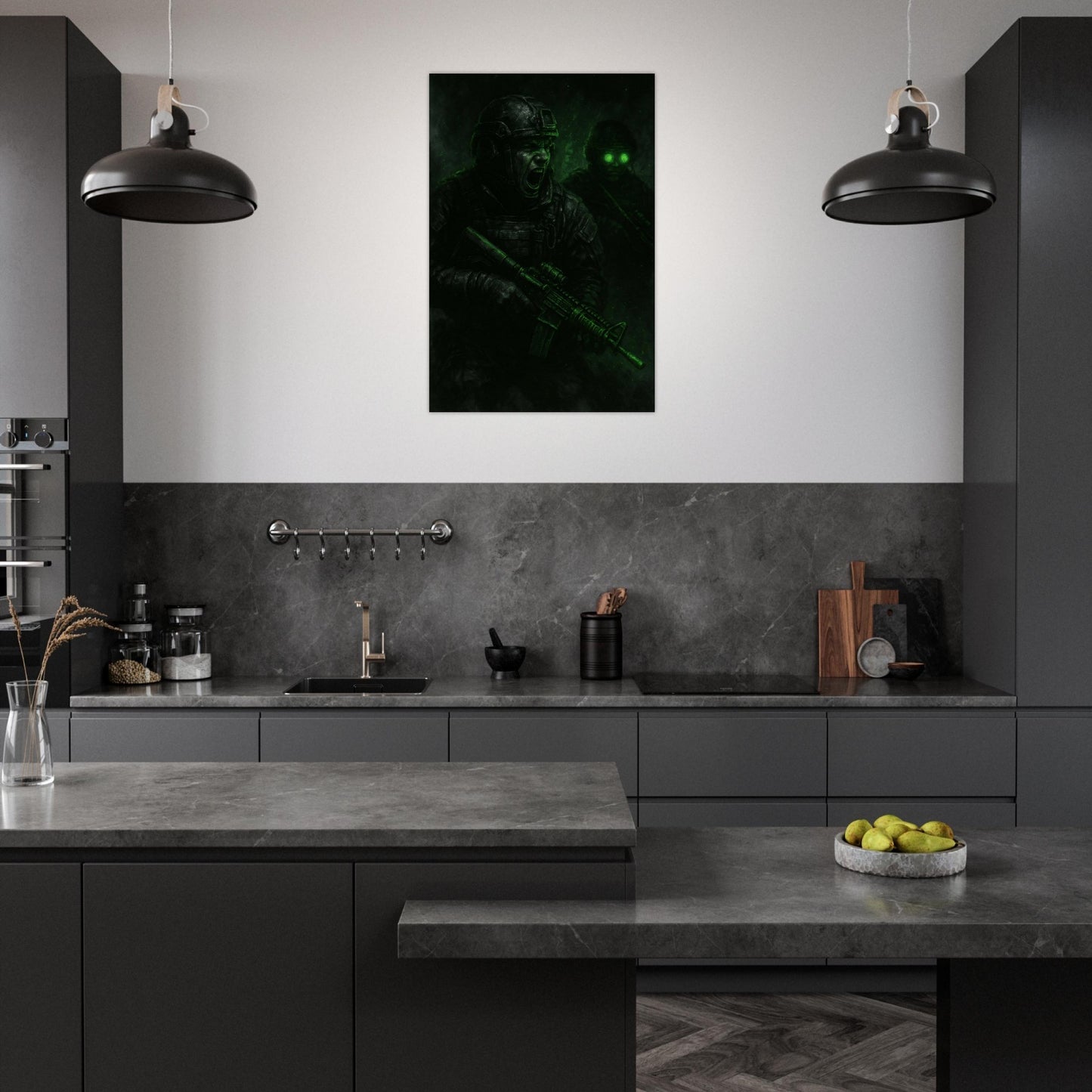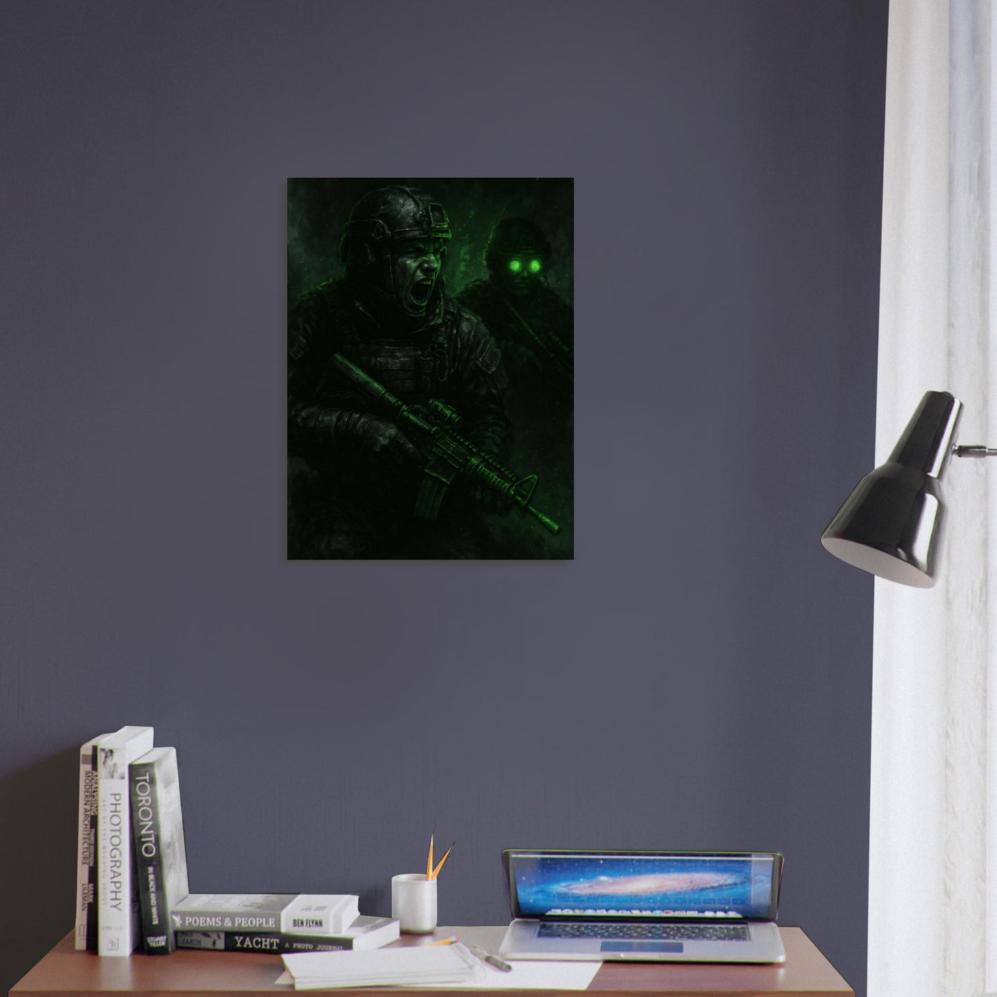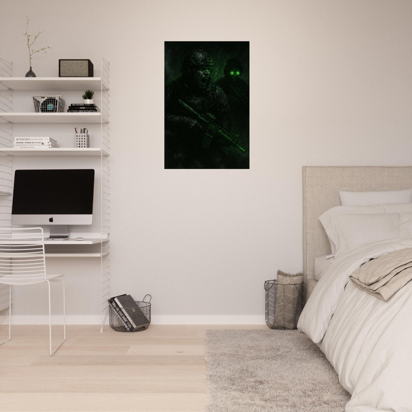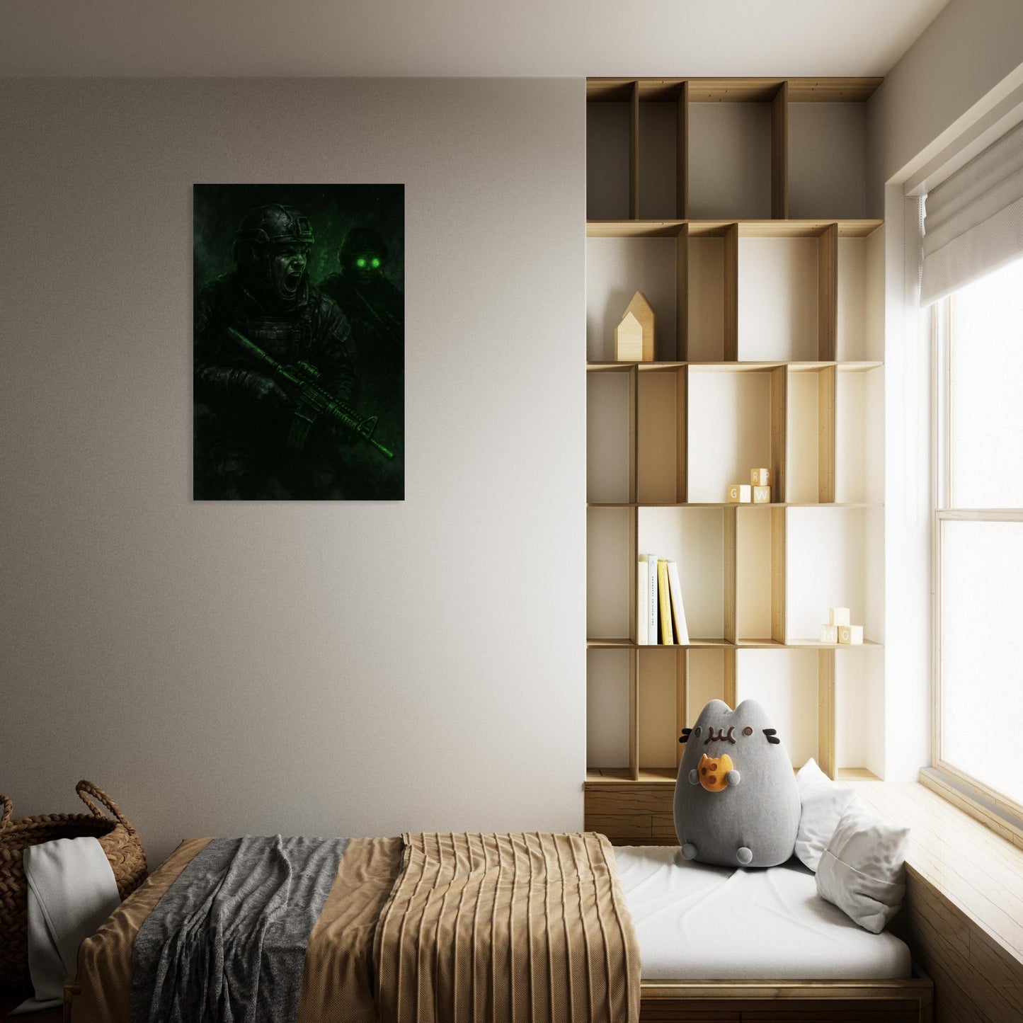 This artwork channels the raw energy of a high-stakes black ops moment—equal parts precision and fury. With vivid night vision contrast and cinematic detail, it's the perfect centerpiece for man caves, gaming setups, or any space that celebrates elite warfare.