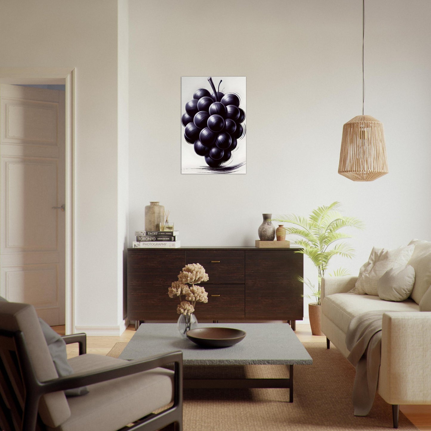 Gorgeous Grapes presents a sophisticated monochromatic cluster of grapes, rendered with meticulous detail and masterful play of light and shadow. This canvas print elevates the natural beauty of fruit with modern elegance, making it perfect for dining rooms, kitchens, or minimalist interiors seeking a refined focal point.