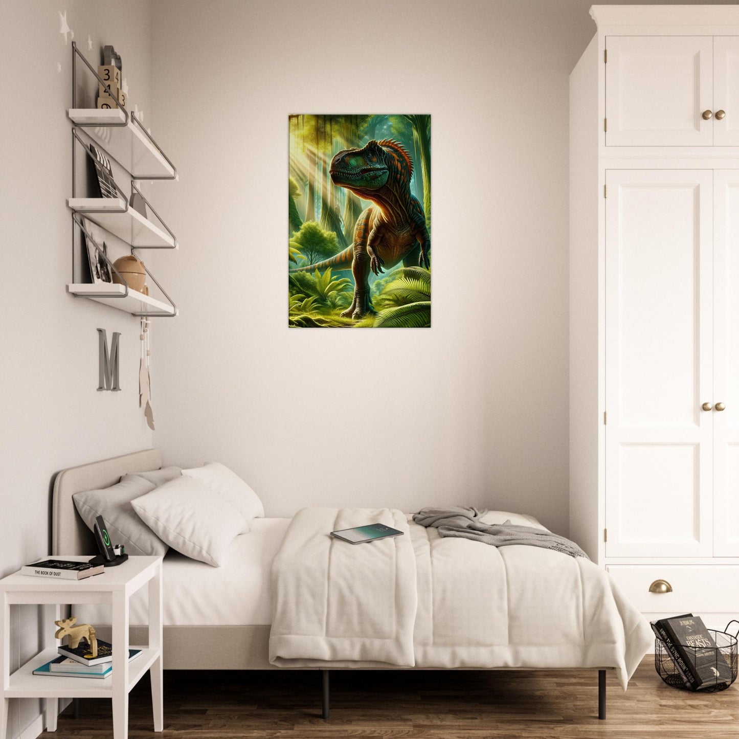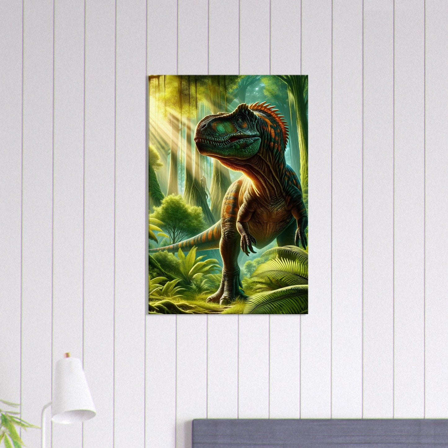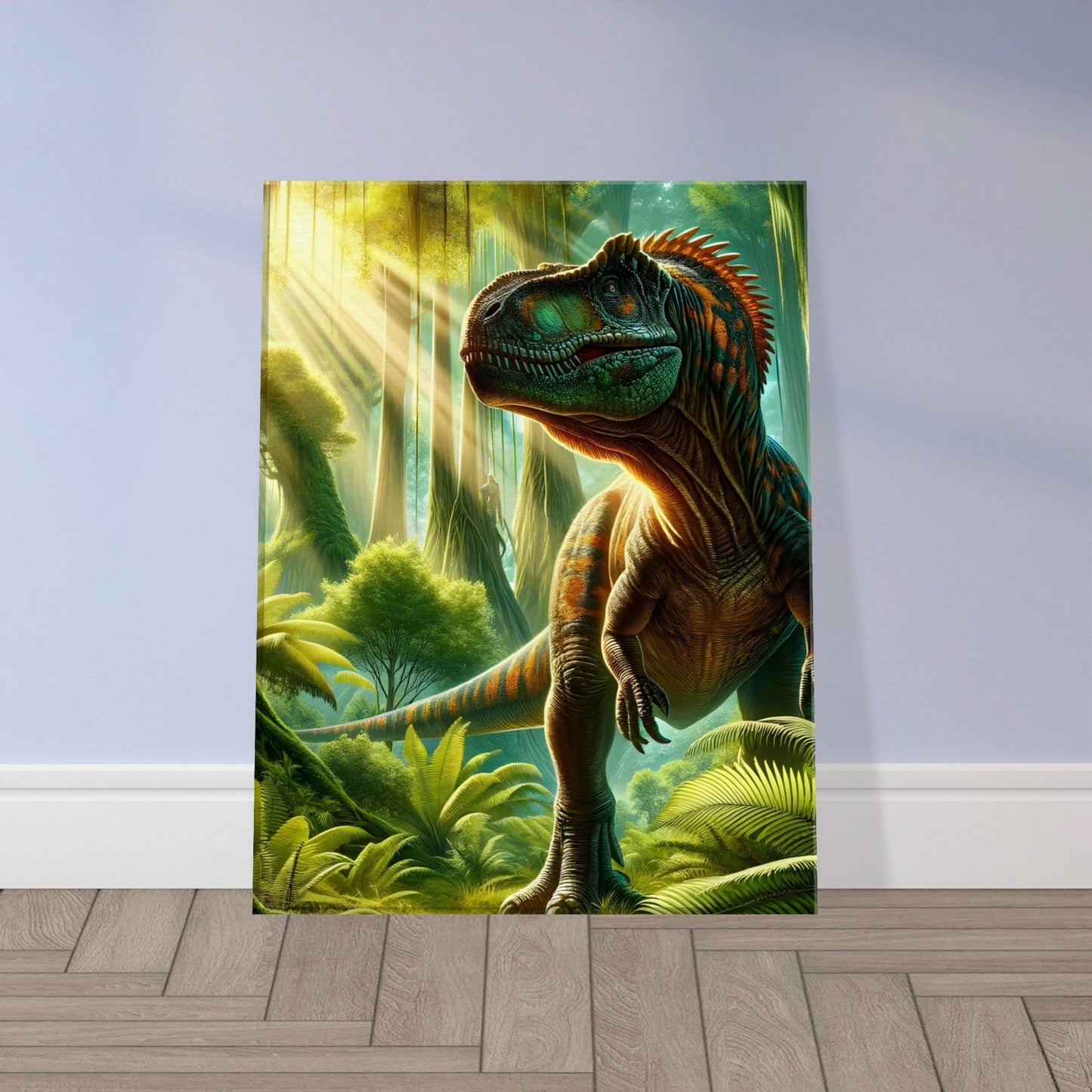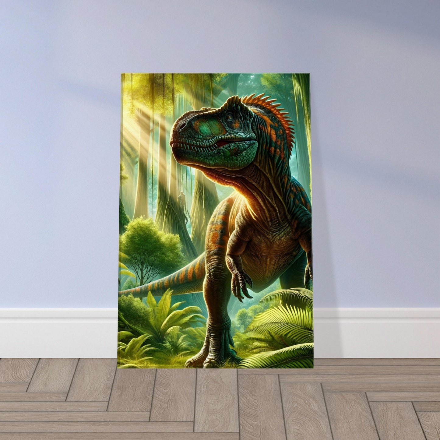 Jurassic Splendor is a breathtaking tribute to the grandeur of Earth’s ancient past—a vivid portrayal of a towering dinosaur emerging from the depths of a lush, prehistoric jungle. The artist masterfully balances drama and realism, using nuanced light and shadow to highlight the intricate textures of scaled skin, dense foliage, and atmospheric depth. Every detail pulses with life: the shimmer of reptilian hide, the filtered sunlight through primeval leaves, and the quiet tension of a moment frozen in deep time. Perfect for natural history enthusiasts, paleontology fans, or anyone captivated by the mysteries of our planet's ancient eras, Jurassic Splendor adds a bold, timeless presence to any room. Printed on premium-quality canvas and ready to hang, this piece is a powerful intersection of science, imagination, and visual storytelling.