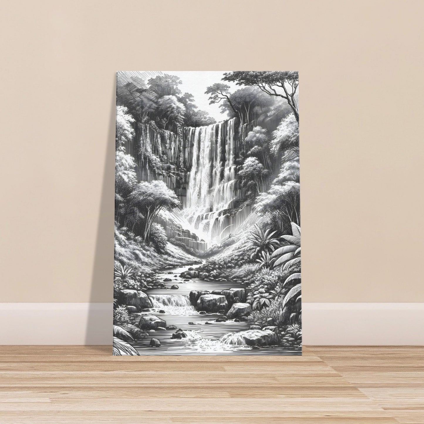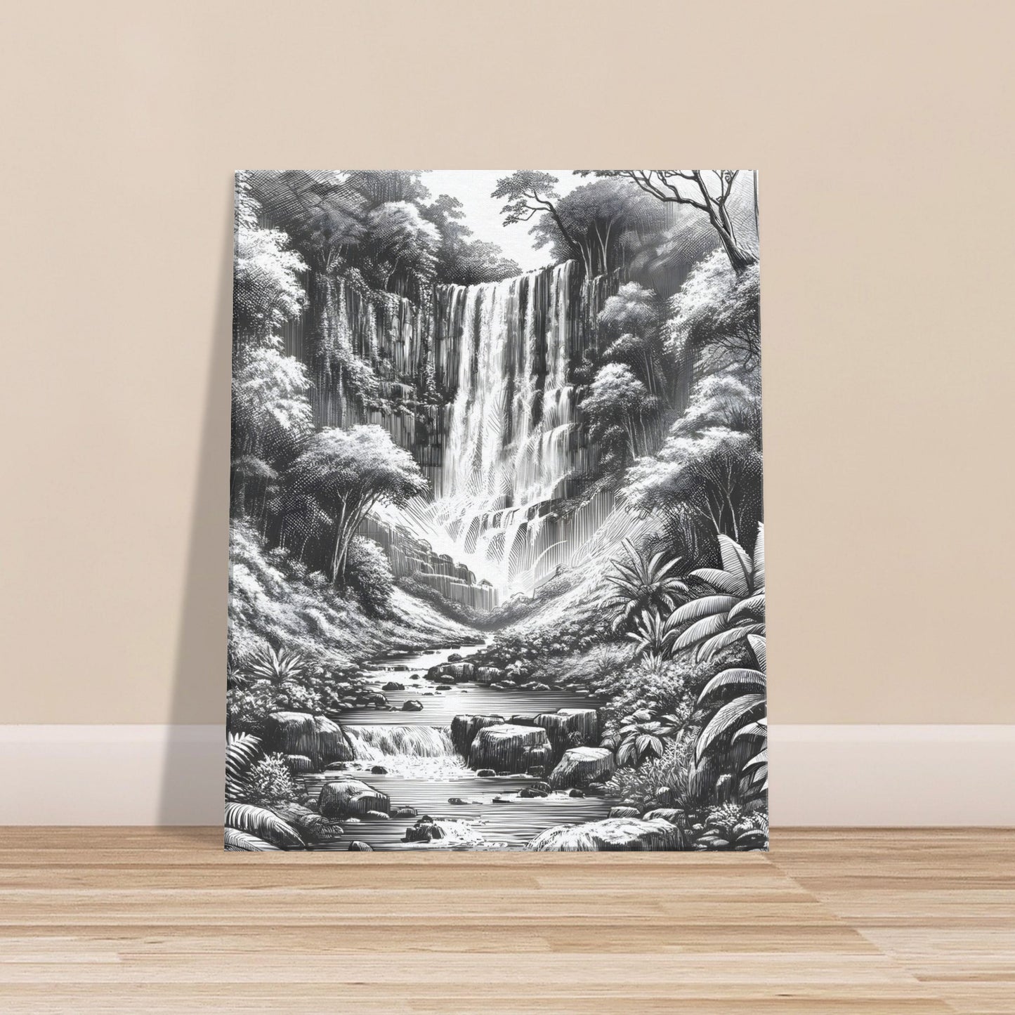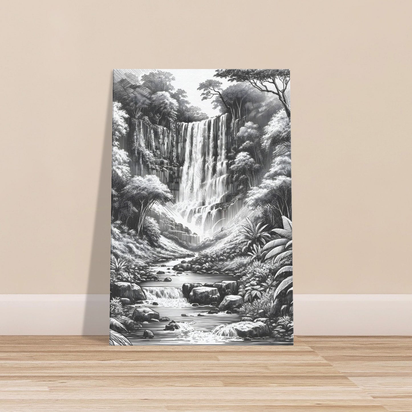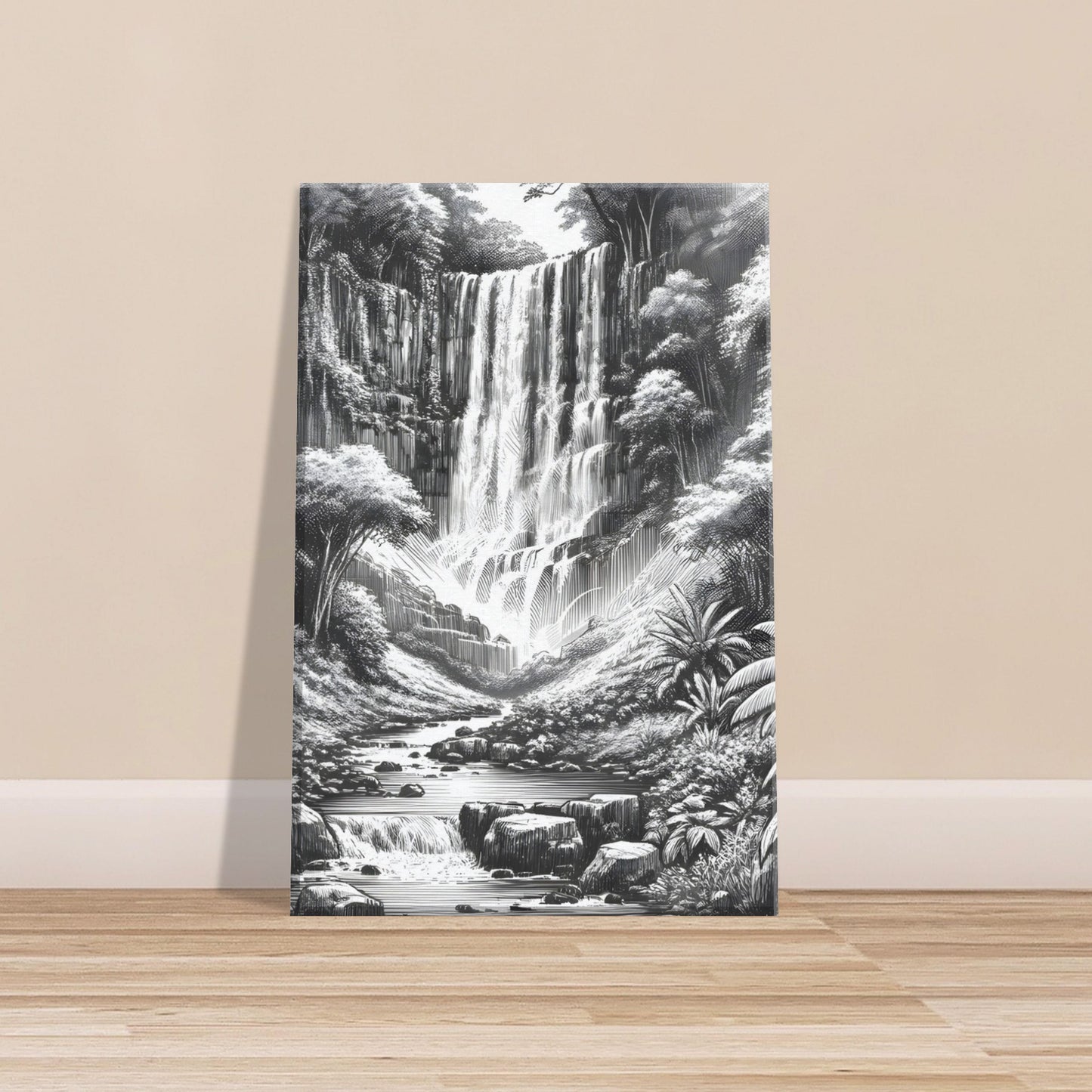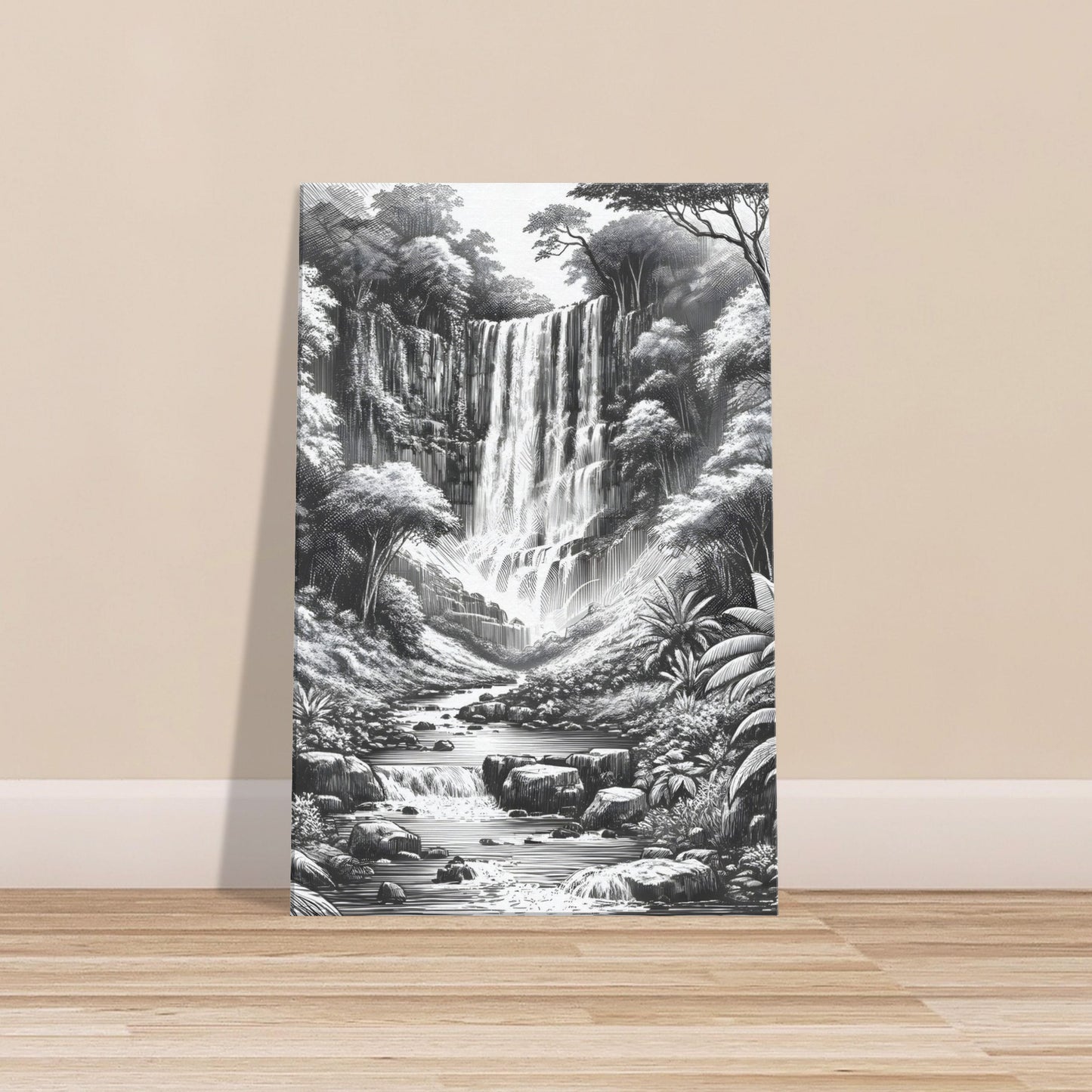 Majestic Waterfall Sketch - Jungle Canvas Wall Art Print