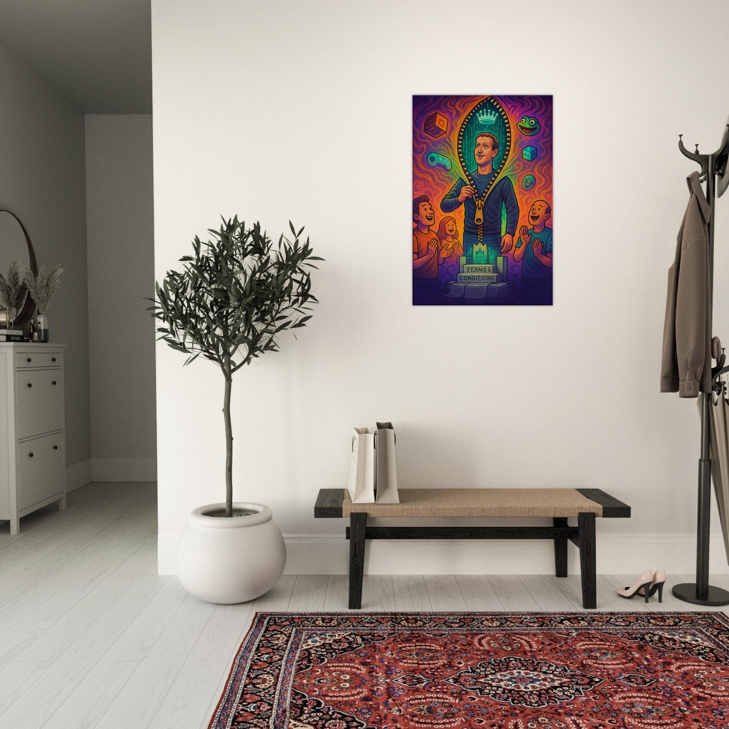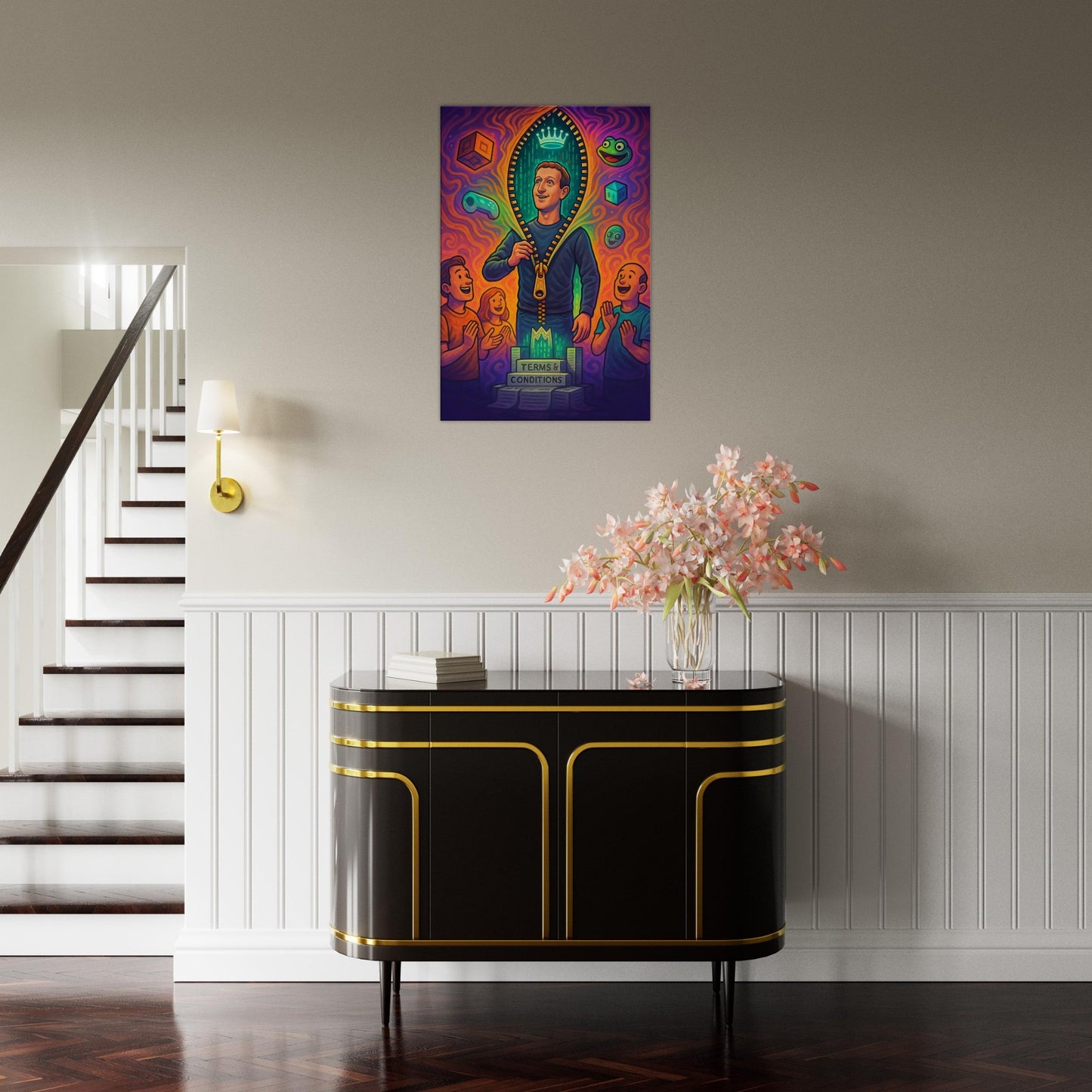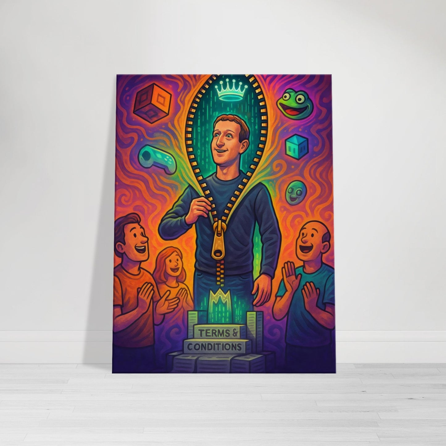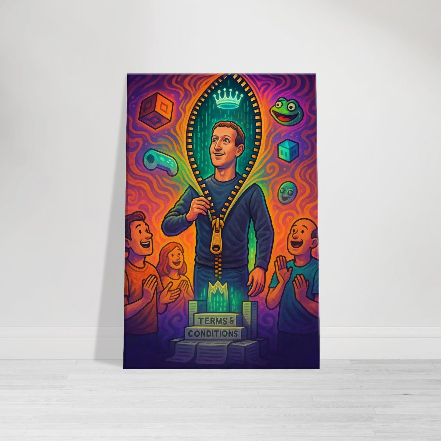 Equal parts sci-fi satire and digital dystopia, this piece is perfect for tech-heads, meme collectors, and anyone who’s ever questioned if they’re actually living in a simulation.