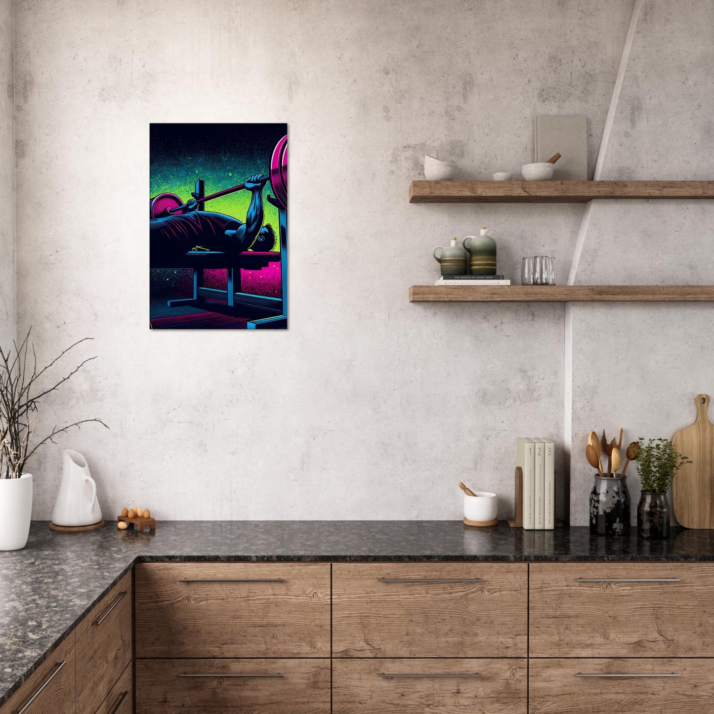 Perfect for home gyms or strength-focused spaces, this piece celebrates strength, focus, and the classic challenge of pushing limits.
