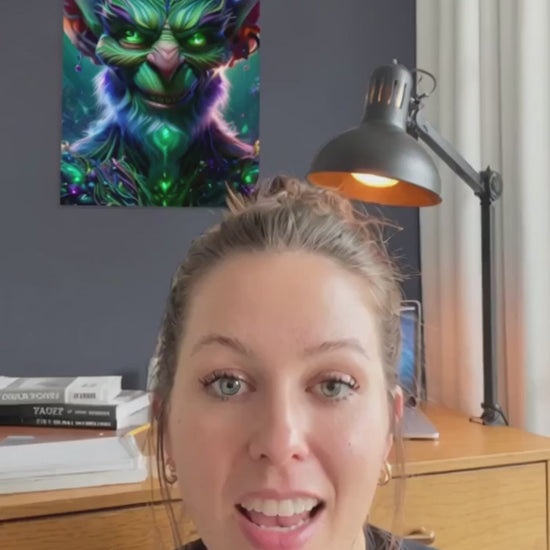 Cunning and cloaked in enchantment, Mystic Shadow captures the elusive essence of the Goblin—mischief, magic, and mystery entwined in one luminous figure. With sharp, angular features twisted in a knowing grin, this creature’s glowing green eyes shimmer with secrets best left untold. Its deep emerald skin is enriched with subtle accents of violet and midnight blue, as if the forest’s magic flows through its very veins. Nestled within a dimly lit, enchanted woodland, the Goblin is bathed in the eerie glow of bioluminescent flora and whispering shadows, each flicker of light adding to its otherworldly charm. Mystic Shadow is an homage to the hidden corners of myth, perfect for those drawn to the arcane, the clever, and the mysteriously magical.