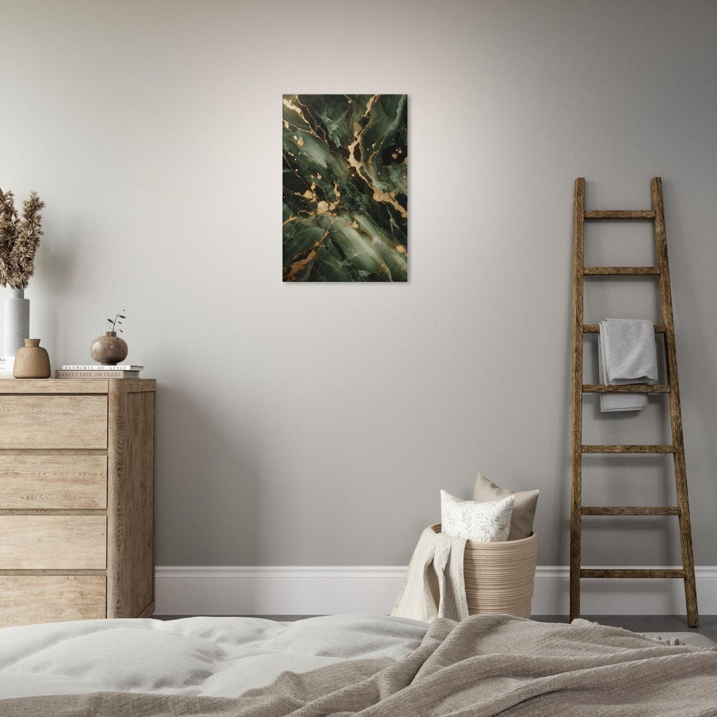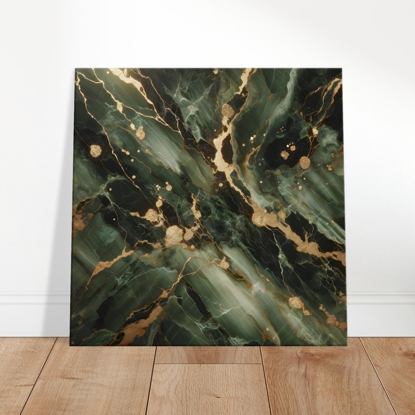 Olive Gold Marble is where earthy richness meets subtle opulence. With a deep olive green backdrop laced with dark green veining and radiant flecks of gold, this marble-style artwork evokes the tranquil beauty of nature with an elegant, luxurious edge. The polished finish enriches the natural tones, casting a soft sheen that highlights the depth and complexity of its organic pattern.