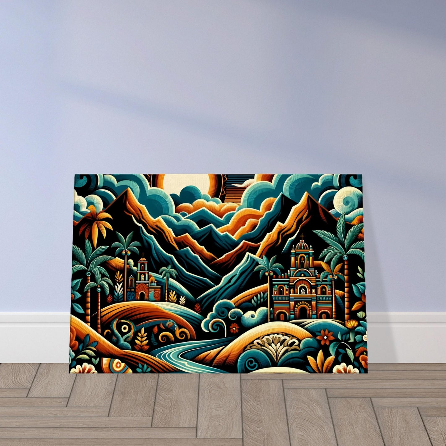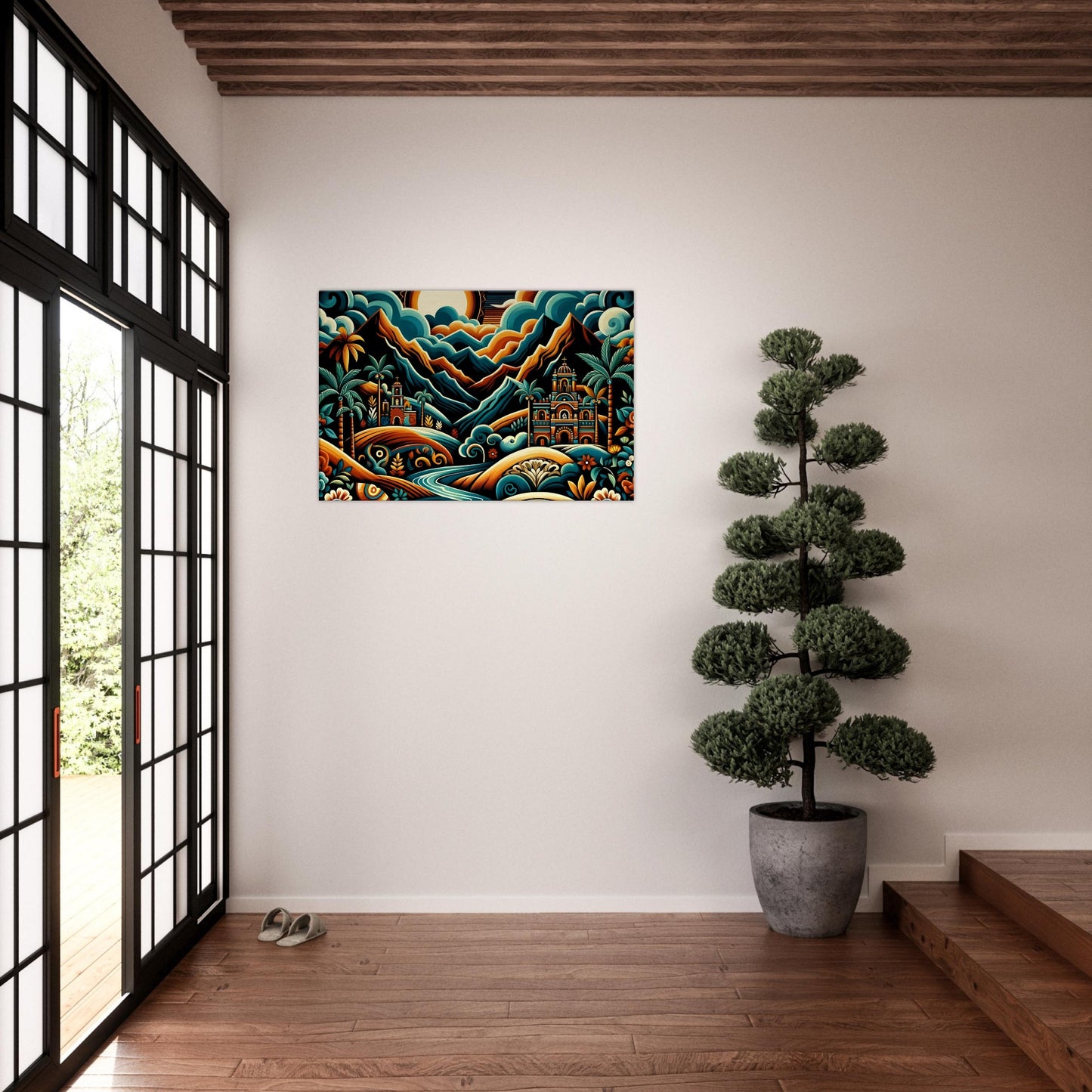 Paisajes de México, “Landscapes of Mexico”, is a vivid tribute to the natural majesty of a country defined by its breathtaking contrasts. This captivating artwork leads the viewer through a tapestry of iconic terrains: azure coastlines, lush tropical jungles, golden deserts, and volcanic highlands, all rendered in bold, expressive color. Each stroke conveys the soul of Mexico’s land, vibrant, untamed, and deeply rooted in cultural identity. Whether evoking the warmth of sunlit canyons or the calm of a forested valley, Paisajes de México invites you to journey through the rich geographical beauty of a nation celebrated for its diversity and spirit. It’s a visual homage to a land as colorful as its people.