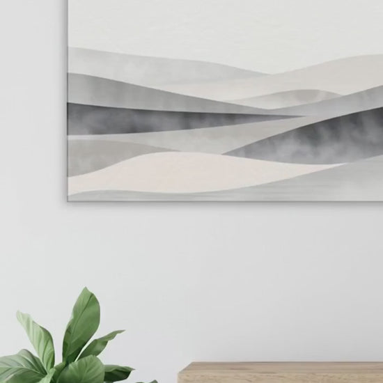 “Pale Horizon Drift” conveys the tranquil beauty of Nordic minimalism with soft horizontal bands of pale grey, muted stone, and off-white. The landscape format emphasizes openness and calm, evoking the serenity of distant Scandinavian horizons. Its understated composition adds spacious elegance to modern interiors, particularly for living rooms, bedrooms, or office spaces styled in neutral, airy tones.