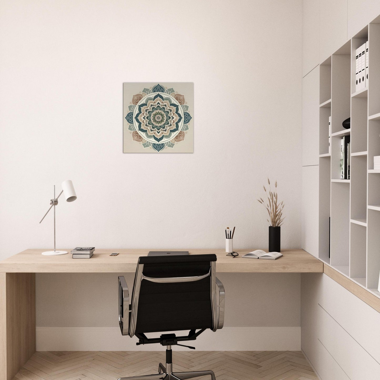 Ideal for bedrooms, meditation corners, or calm living spaces, Periwinkle Serenity Mandala brings a subtle yet impactful statement to interiors seeking light, grace, and harmony. It’s a visual breath—a perfect blend of softness, structure, and serene sophistication.