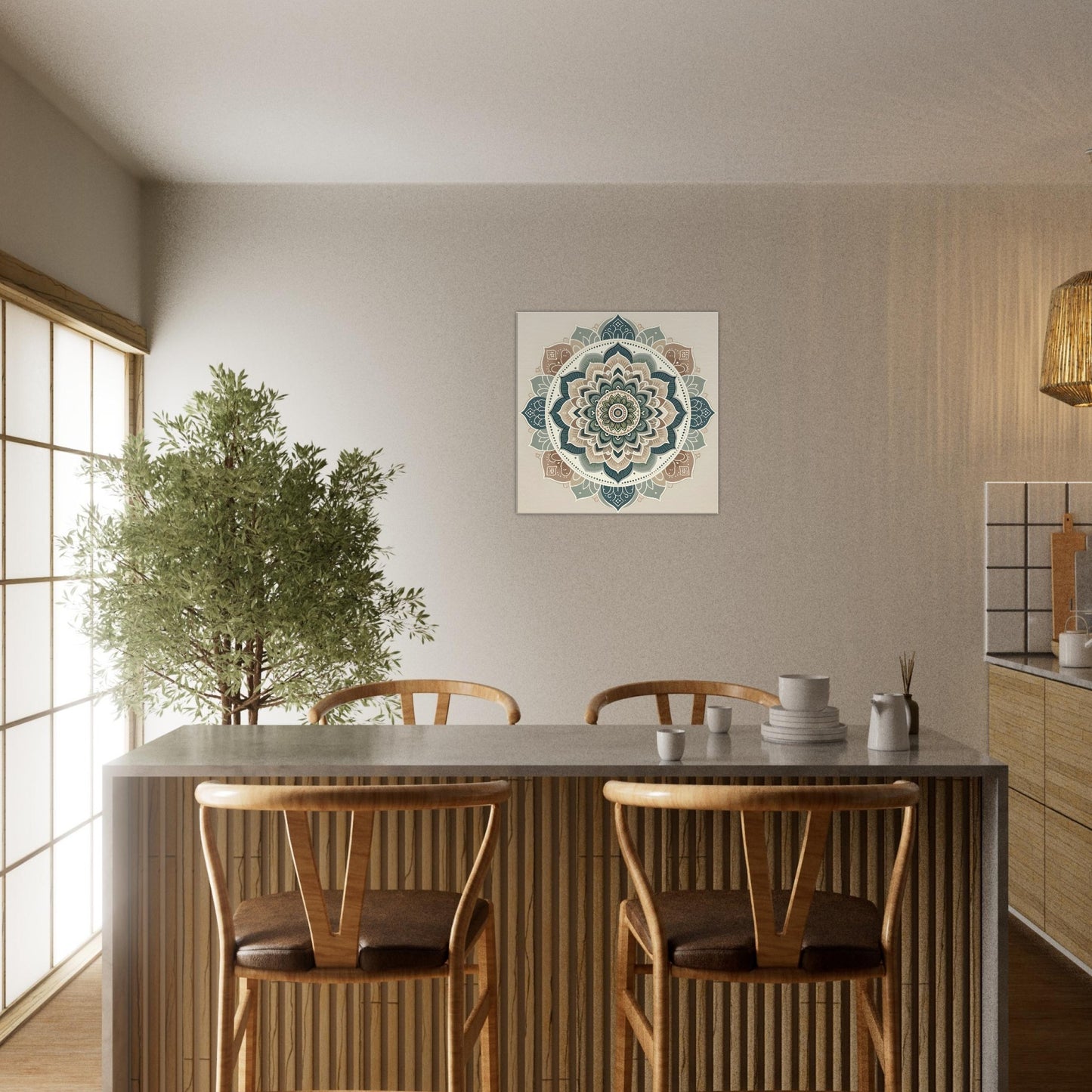 Periwinkle Serenity Mandala is a gentle fusion of traditional form and refreshing modern hues, designed to evoke a sense of quiet elegance. Delicately layered with soft neutrals, this artwork is kissed with accents of periwinkle blue, mint green, and peach—creating a tranquil, airy palette that soothes the senses and elevates the space. Its symmetrical design draws the eye inward, offering a balanced composition that feels both timeless and current.