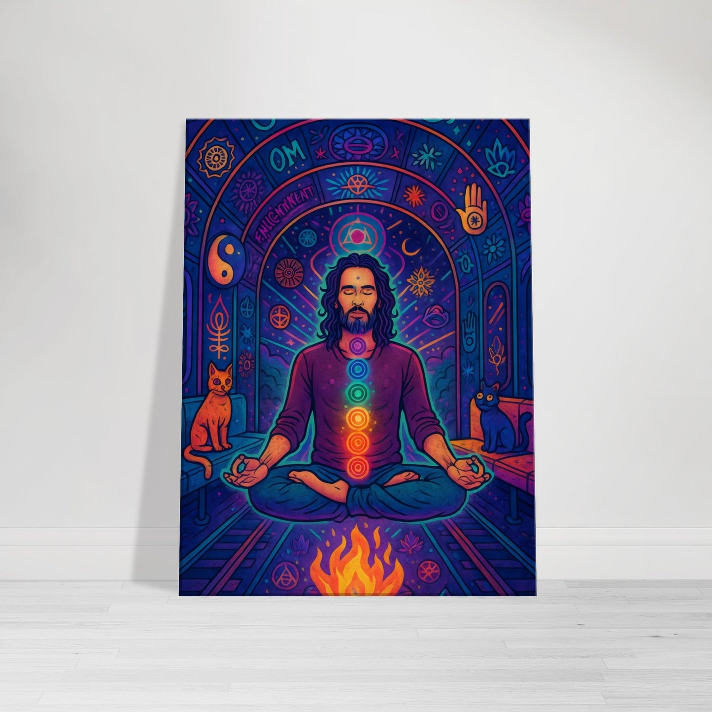 Hop on the chakra express — destination: inner peace (or at least some cosmic confusion). In “Russell Brand’s Enlightenment Tunnel,” the man himself floats in lotus pose inside a glowing subway filled with neon symbols, graffiti wisdom, and casually mystical cats.