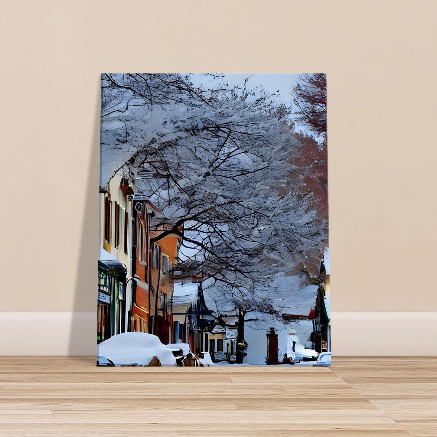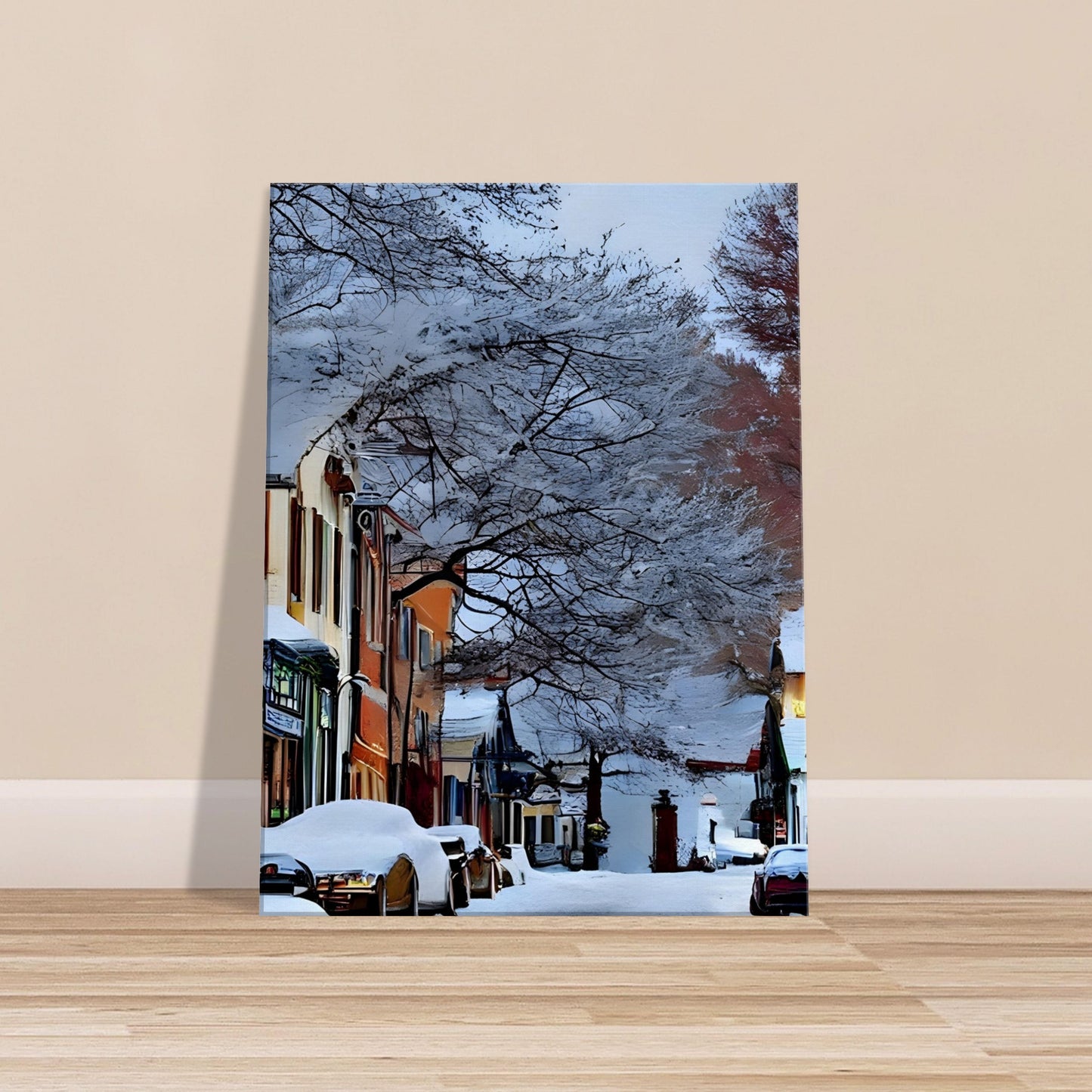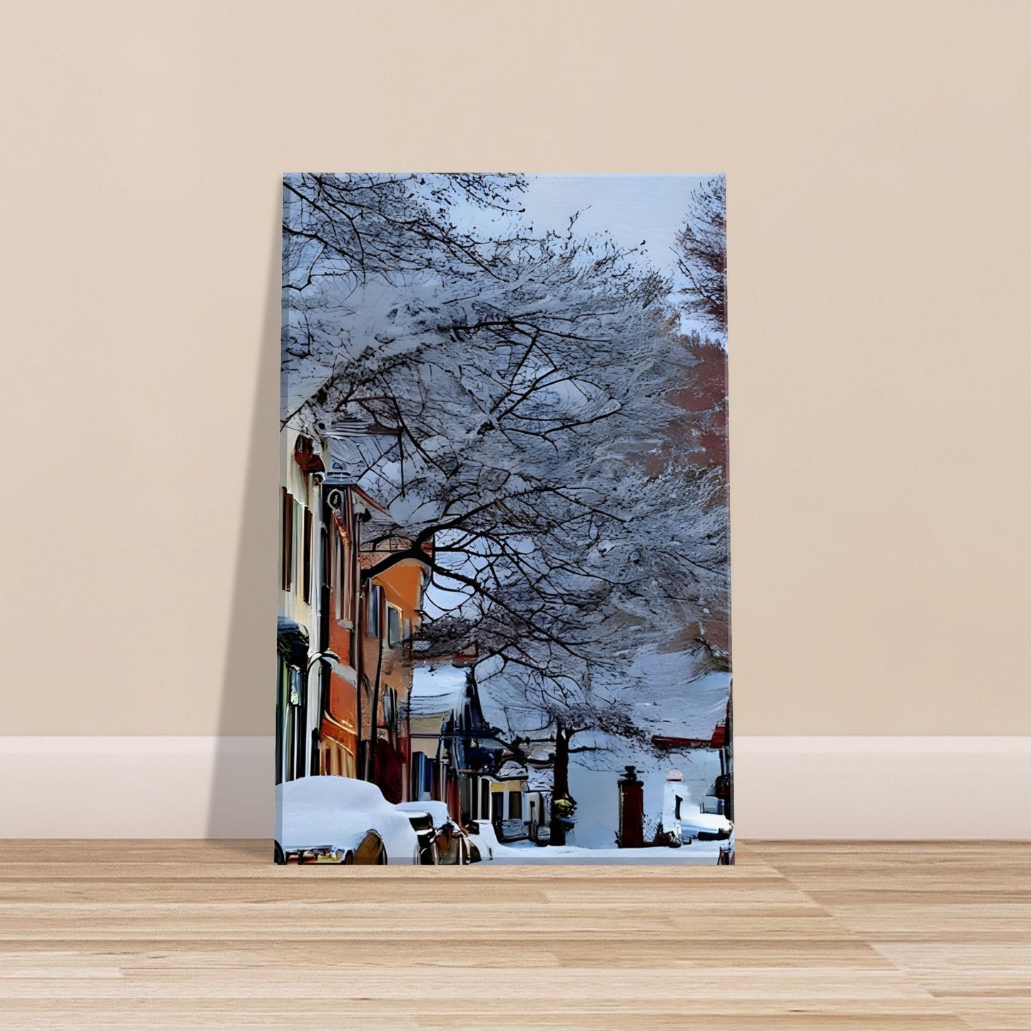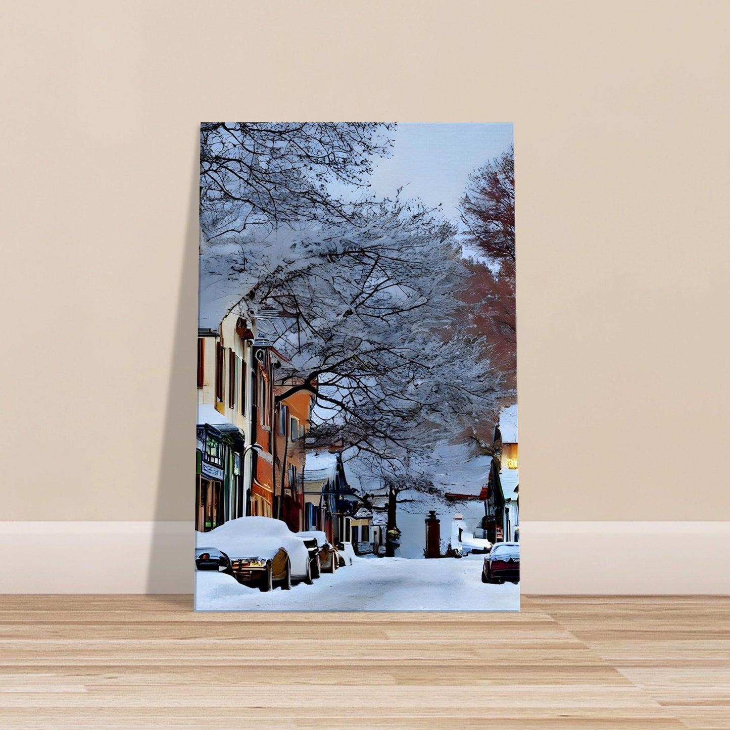 Perfect for winter decor, cosy interiors, or anyone who loves the quiet magic of small-town life.