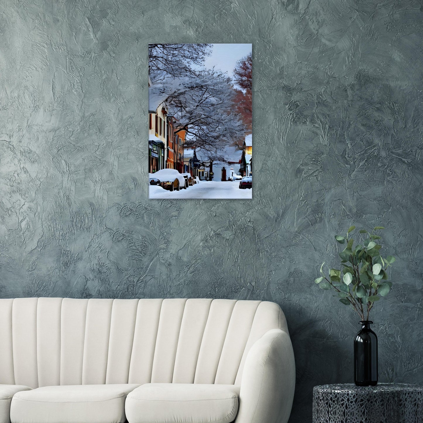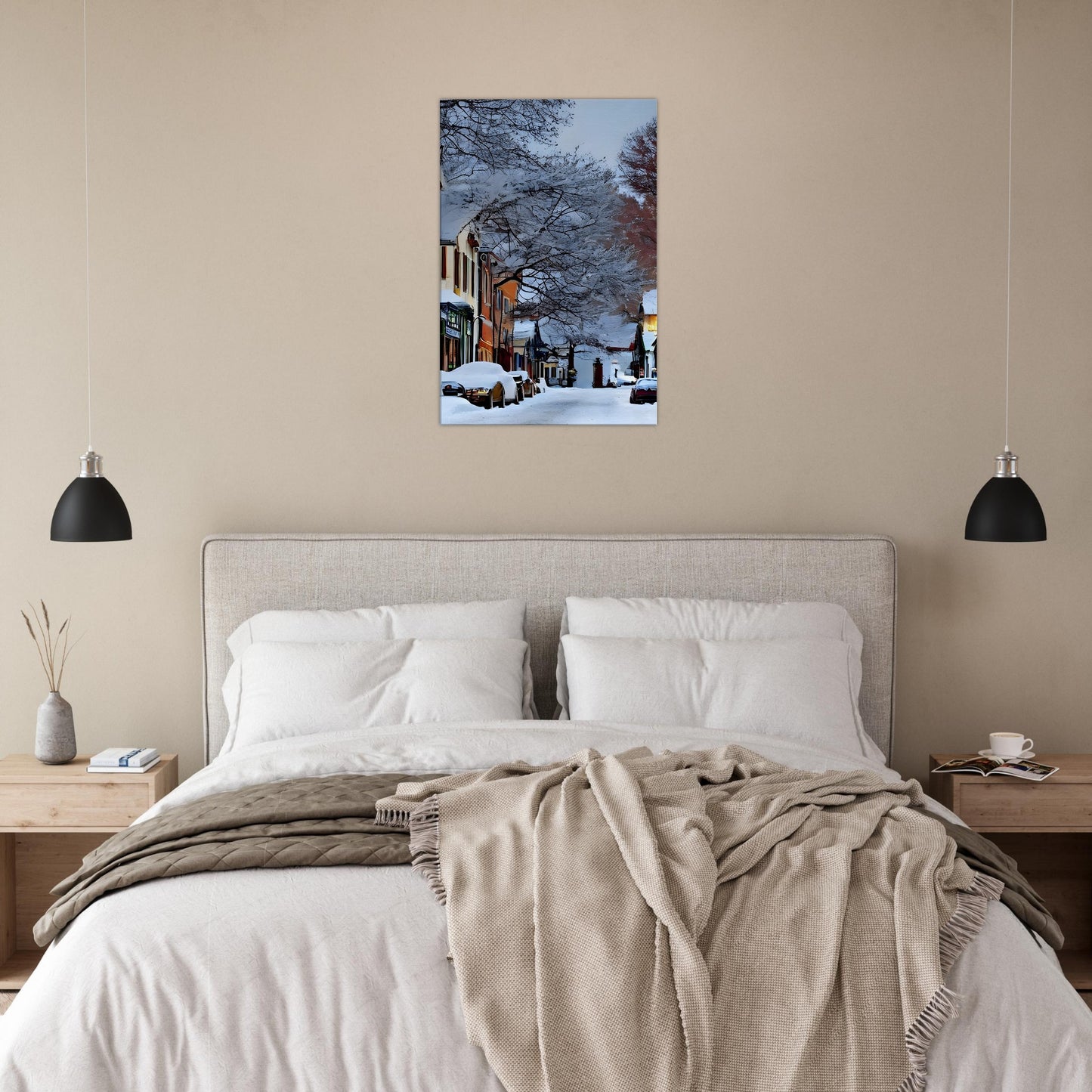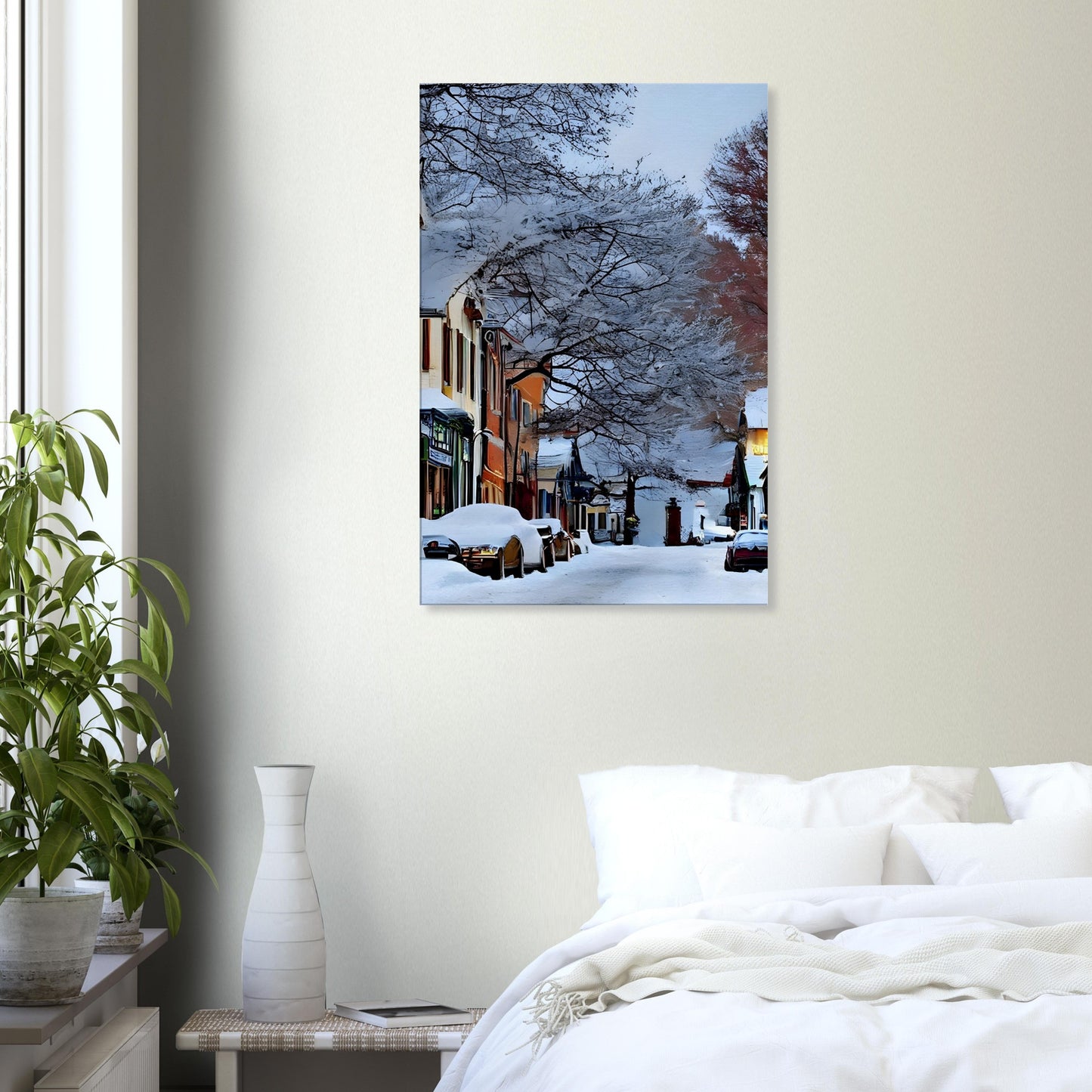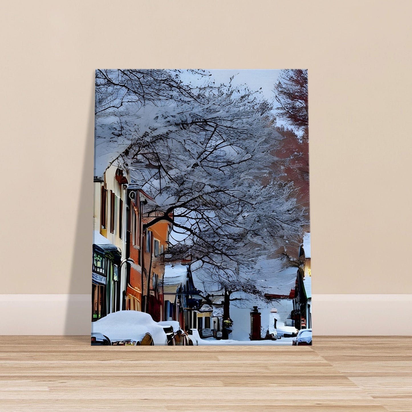 Perfect for winter decor, cosy interiors, or anyone who loves the quiet magic of small-town life.