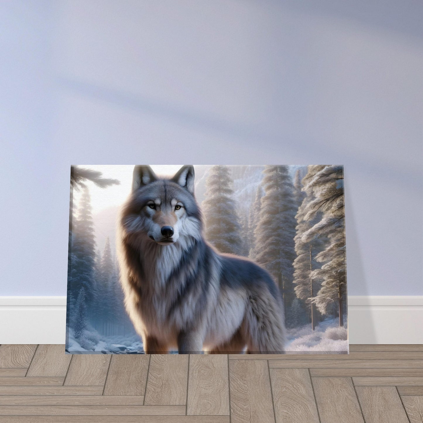 Snowy Wolf masterfully captures the raw spirit and majestic presence of the wild in a stunningly lifelike portrayal. Poised with commanding grace, the wolf’s piercing gaze pierces through the tranquil winter forest, bathed in the gentle glow of a soft sunrise. Surrounded by snow-dusted trees, this artwork evokes a profound sense of resilience, calm, and untamed beauty. A tribute to the enduring strength of nature’s most iconic predator, Snowy Wolf brings a serene yet powerful wilderness presence into any space, perfect for those who cherish the grandeur of the natural world.