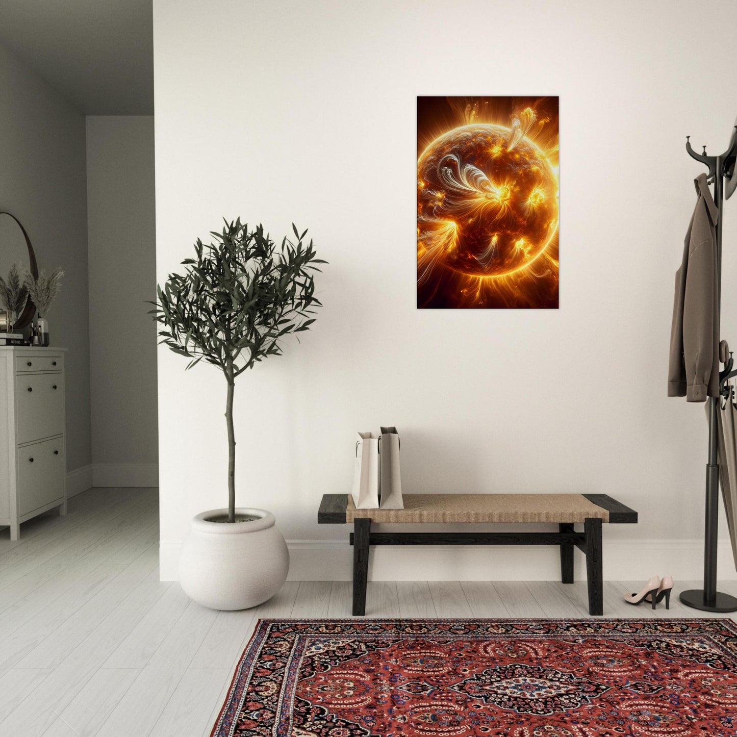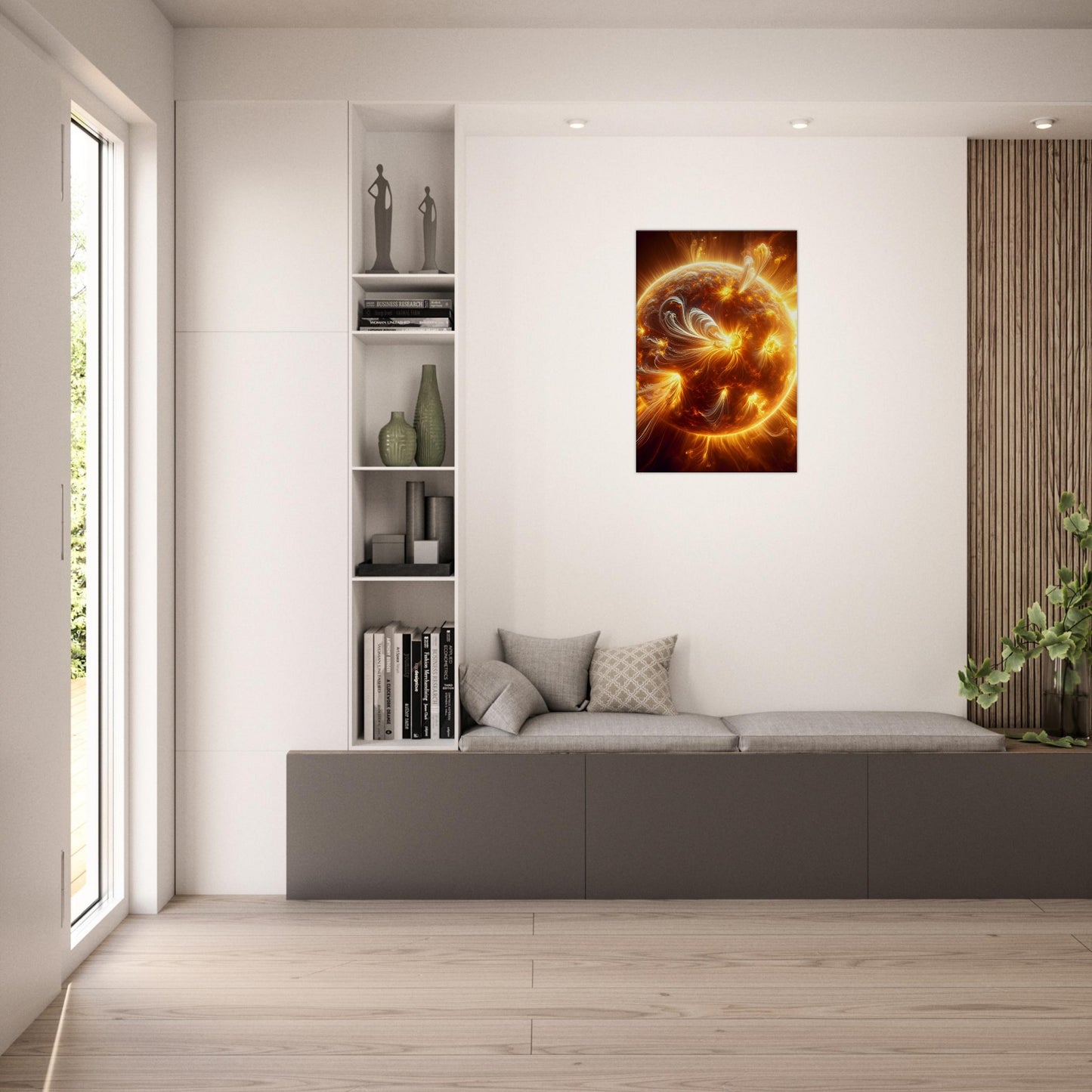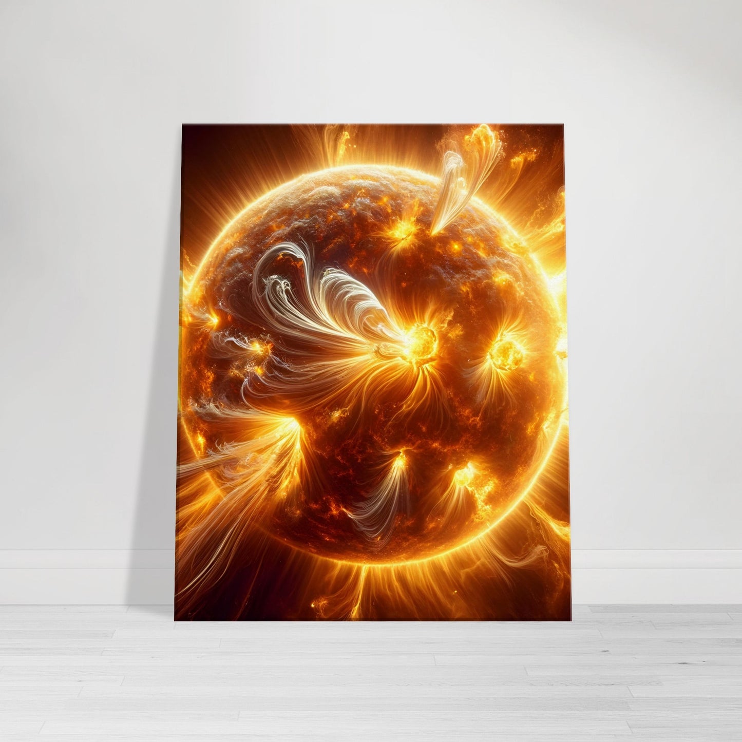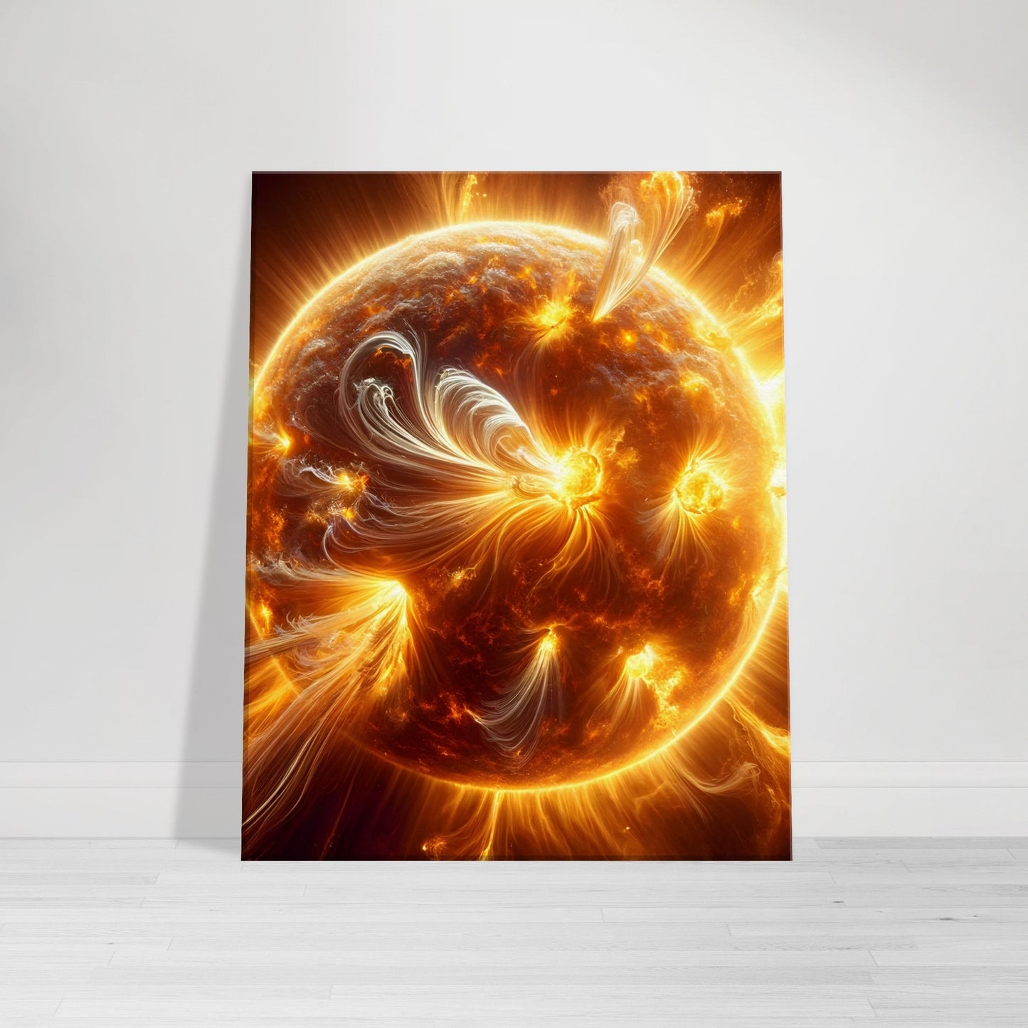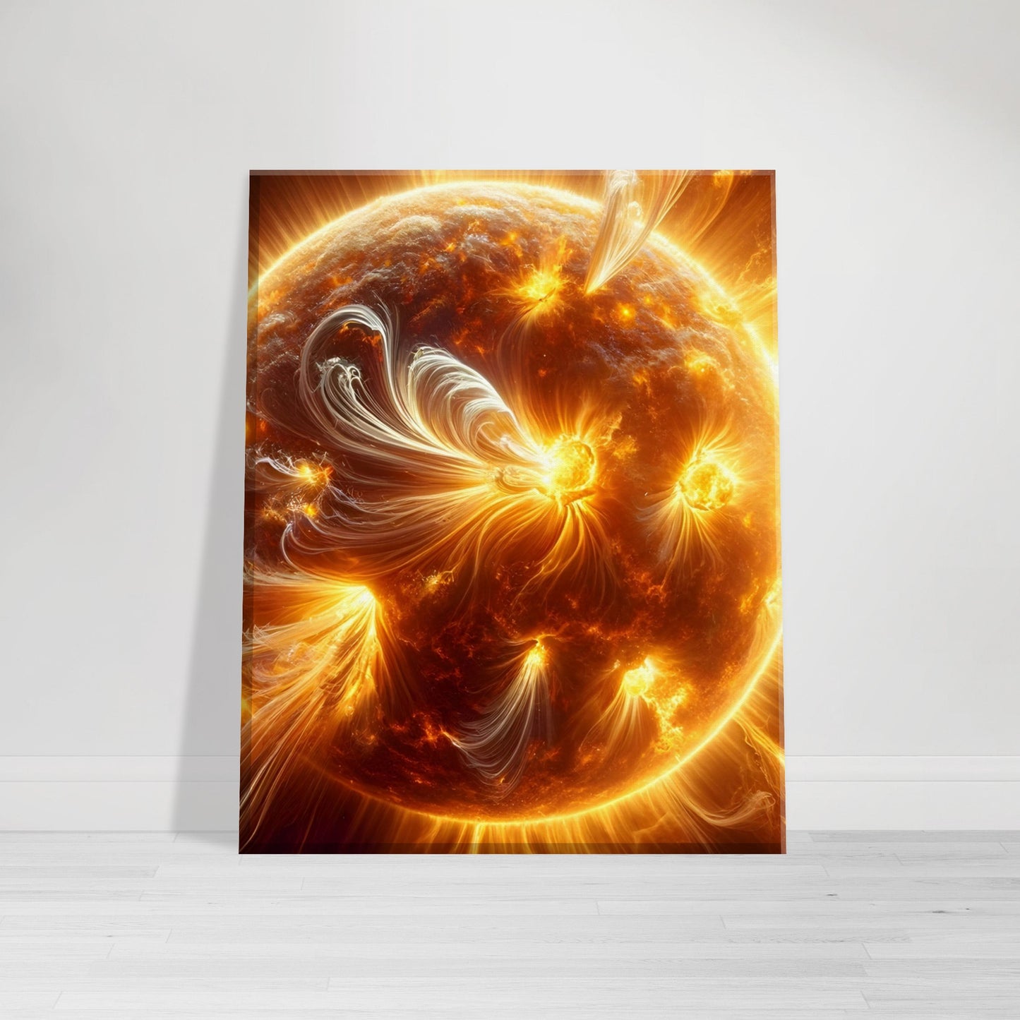 Every detail—etched in luminous, high-definition print on richly textured cotton-polyester canvas—echoes the sun’s intensity and grandeur. Stretched over FSC-certified wooden bars and framed with precision, Solar Fury invites the viewer to witness the sublime violence of space from the safety of their own home. A centerpiece for any room, this piece is perfect for lovers of science, awe, and celestial drama.