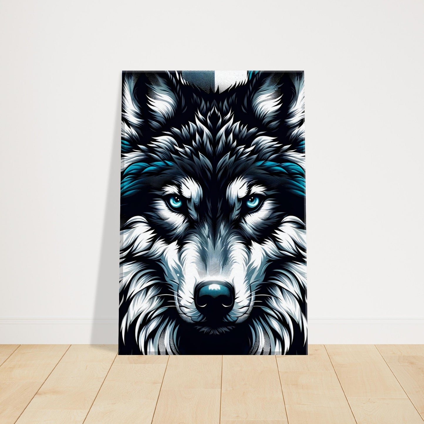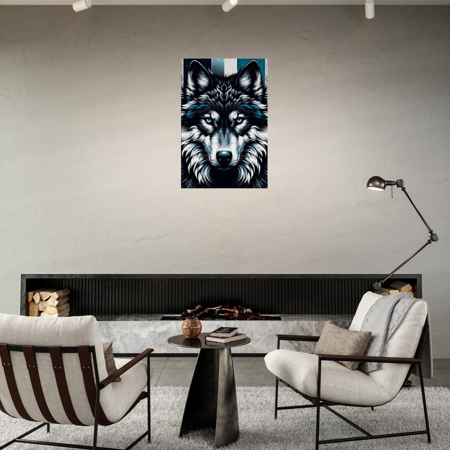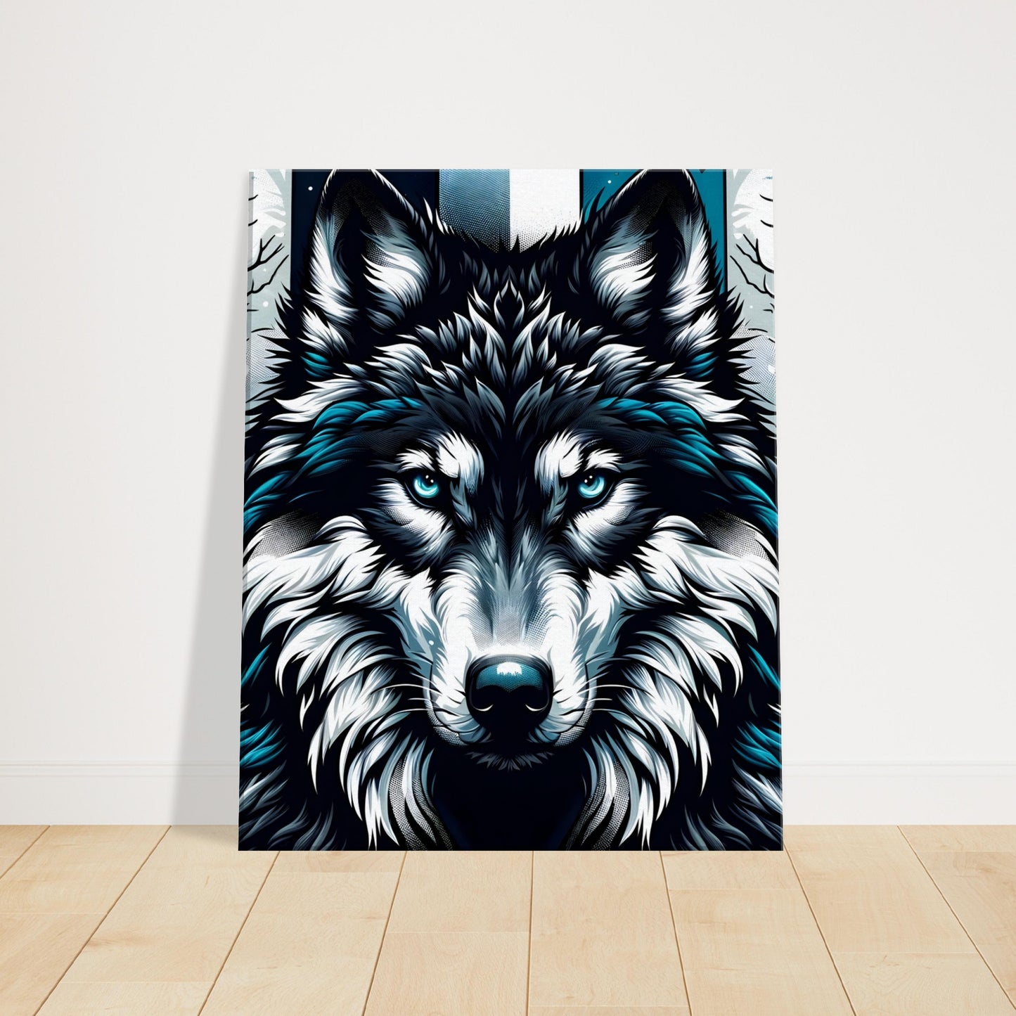 Stealthy Wolf – Pop Art commands attention with its striking portrayal of the enigmatic and spirited wolf. Piercing blue eyes cut through the contrast of dark and white fur, drawing viewers into a mysterious wilderness realm. Set against a haunting moonlit winter forest, the artwork captures the wolf’s silent vigilance and commanding presence. Its gaze, both challenging and inviting, embodies the noble poise and fierce guardianship of this majestic predator. Rendered with bold colors and dynamic textures, this high-quality print transforms any space into a sanctuary of untamed beauty and wild spirit.