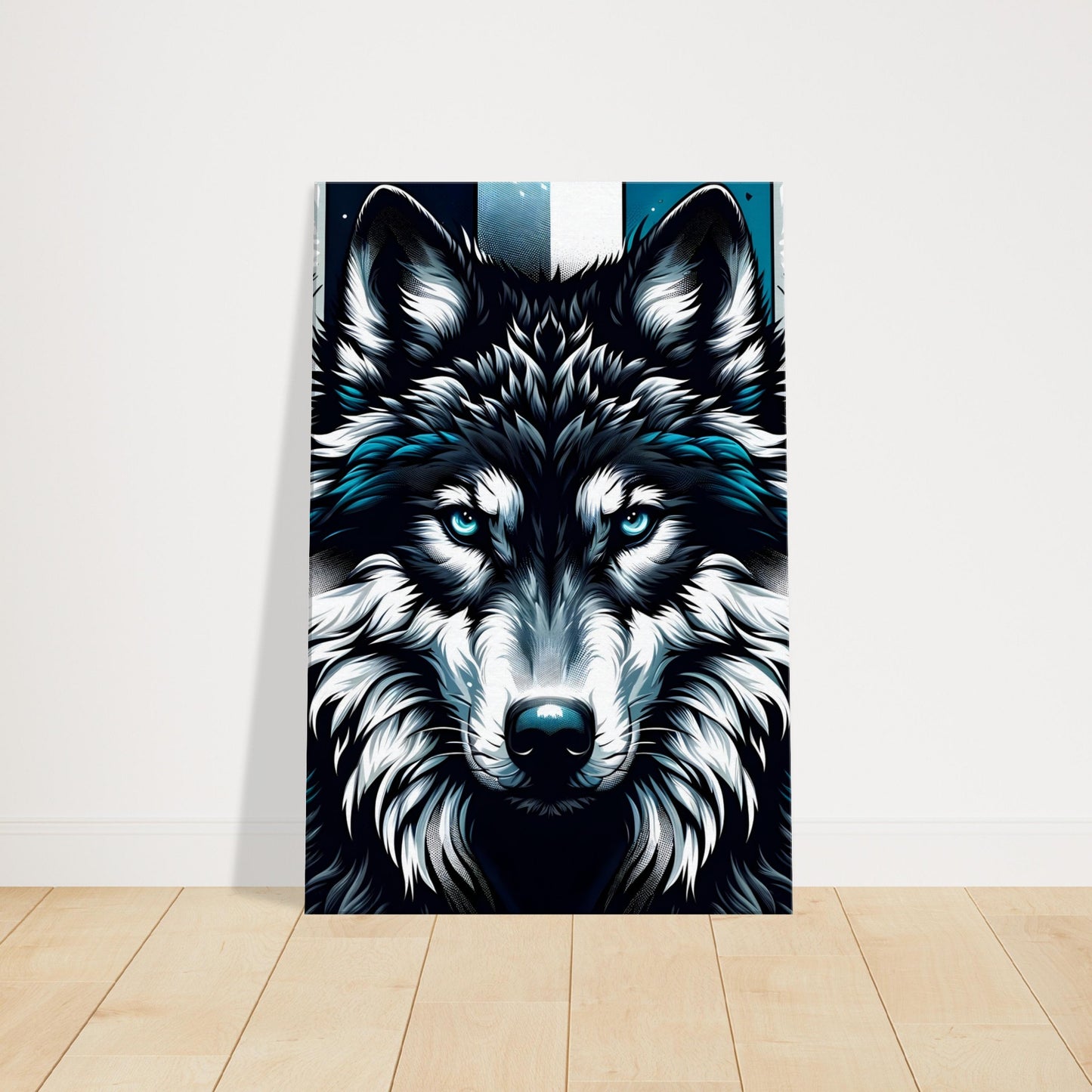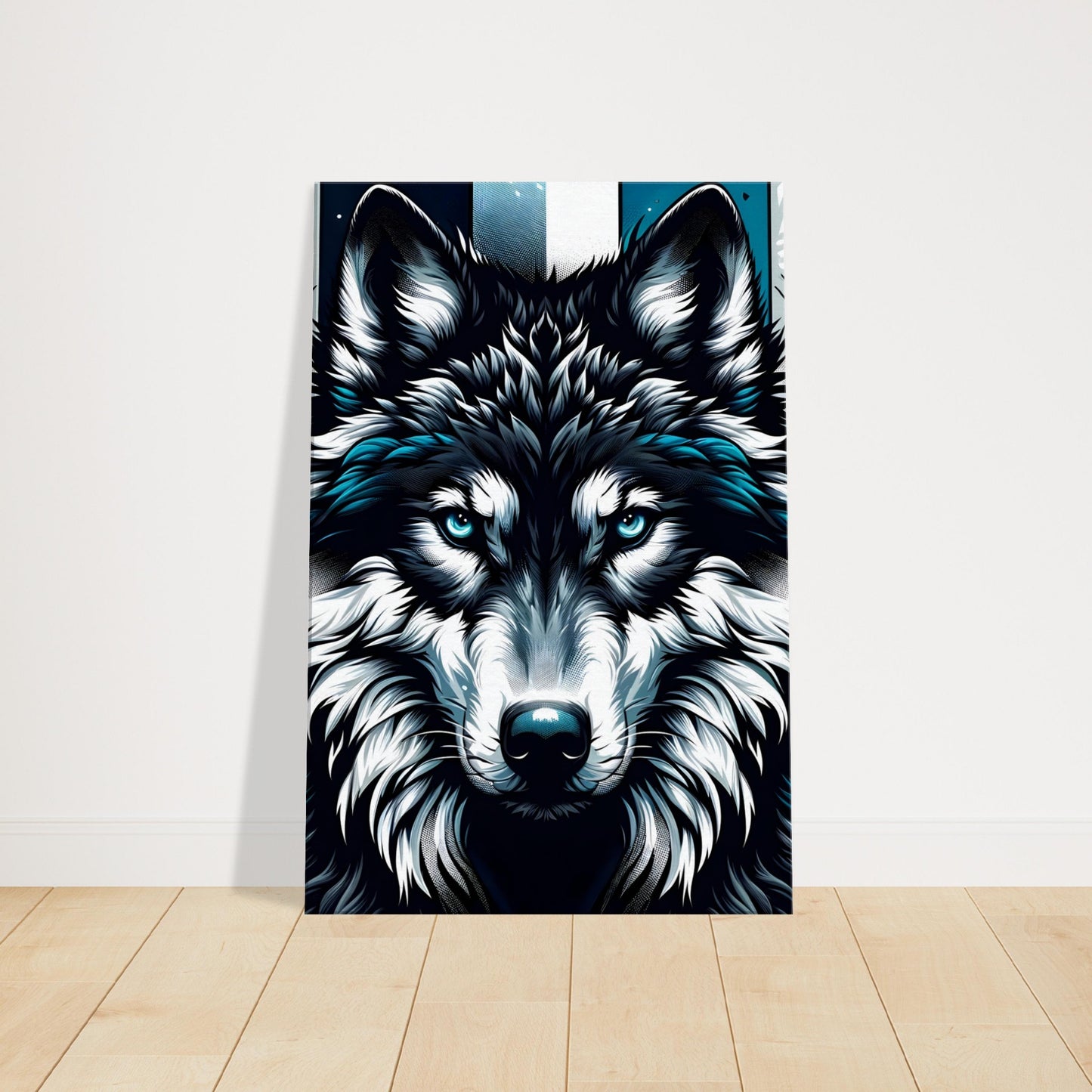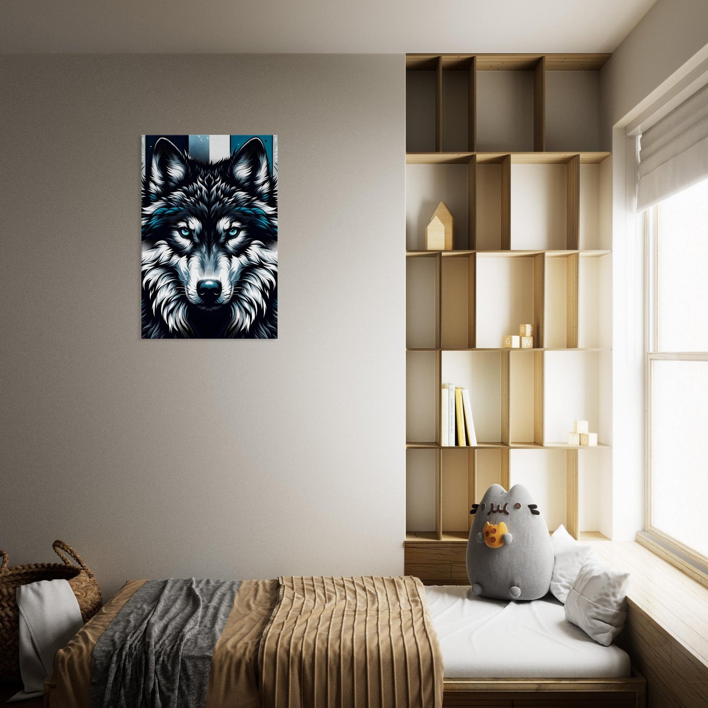Stealthy Wolf – Pop Art commands attention with its striking portrayal of the enigmatic and spirited wolf. Piercing blue eyes cut through the contrast of dark and white fur, drawing viewers into a mysterious wilderness realm. Set against a haunting moonlit winter forest, the artwork captures the wolf’s silent vigilance and commanding presence. Its gaze, both challenging and inviting, embodies the noble poise and fierce guardianship of this majestic predator. Rendered with bold colors and dynamic textures, this high-quality print transforms any space into a sanctuary of untamed beauty and wild spirit.