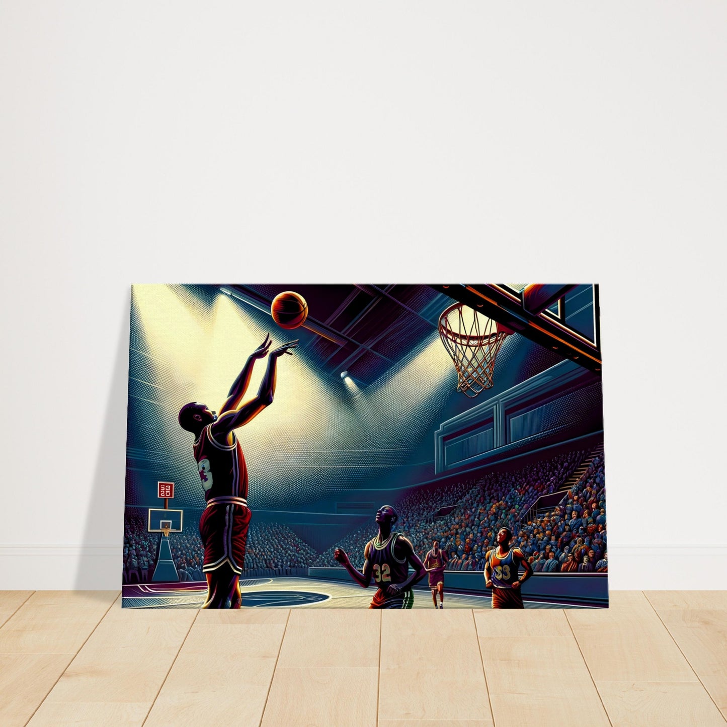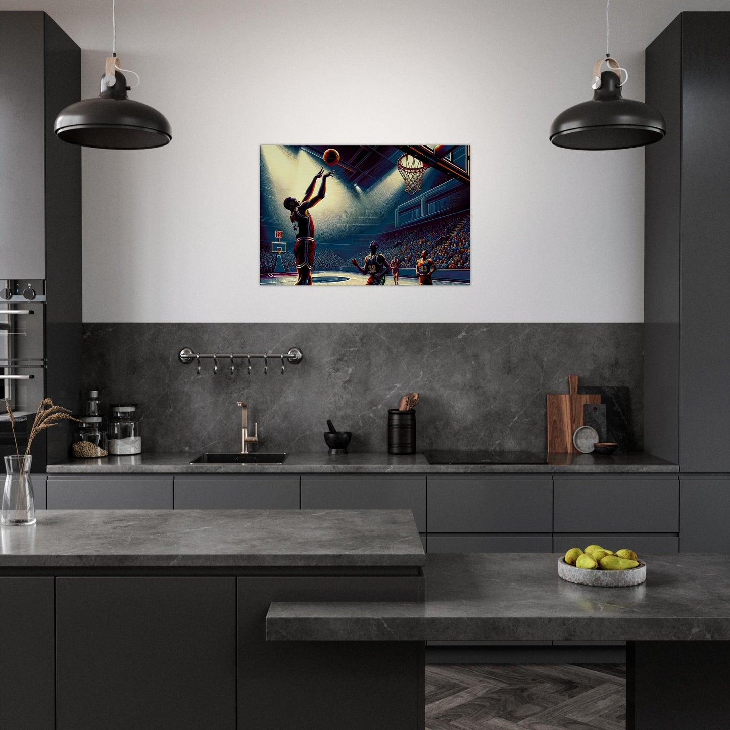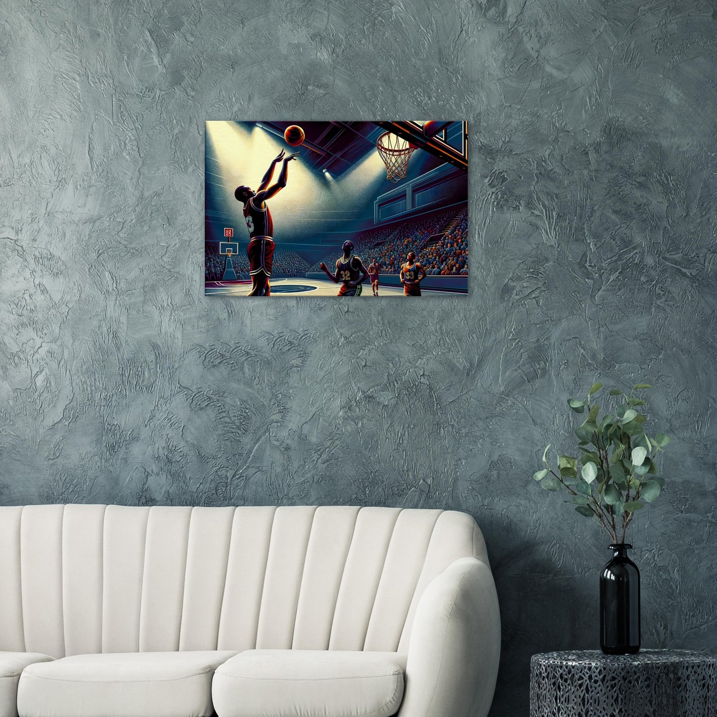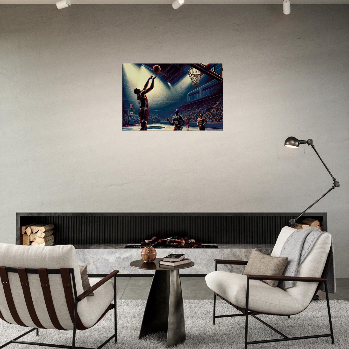 Take the Shot captures a moment suspended in time, the decisive release, the silent tension, the surge of hope as the ball arcs toward the hoop. The player, frozen in flawless form, radiates focus and finesse, while defenders linger just a breath too late. Vivid color contrasts and sharp perspective pull the viewer straight onto the court, immersed in the rhythm of the game. Beams of radiant light cascade from above, turning this fleeting second into a near-sacred act of athletic expression. Take the Shot isn’t just about the play, it’s about conviction, timing, and the artistry behind every point scored. A perfect addition for fans who understand that greatness lives in the milliseconds.