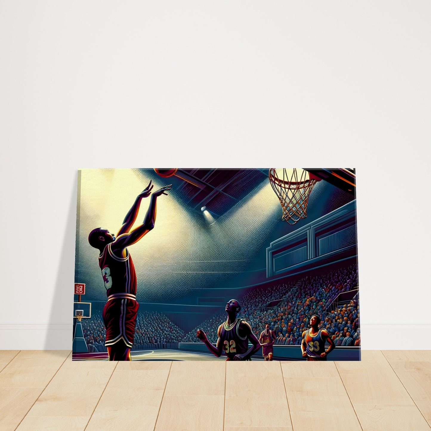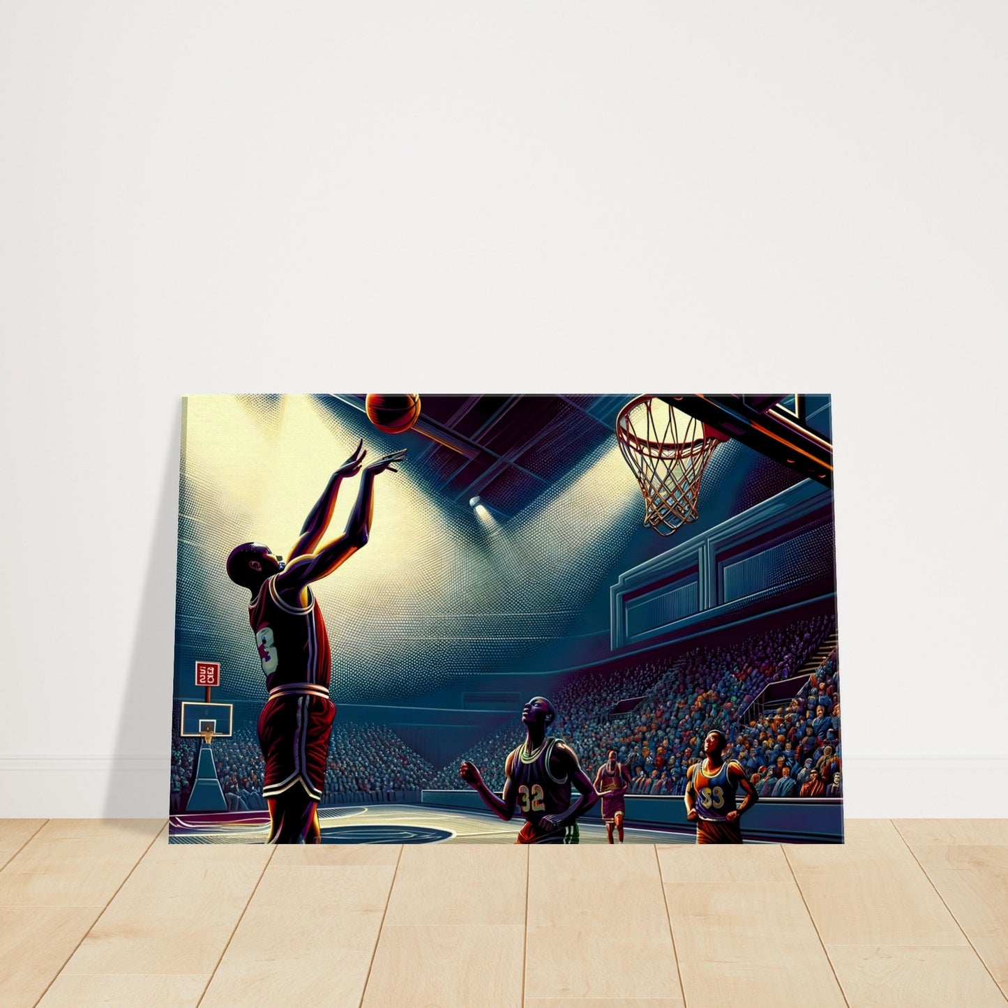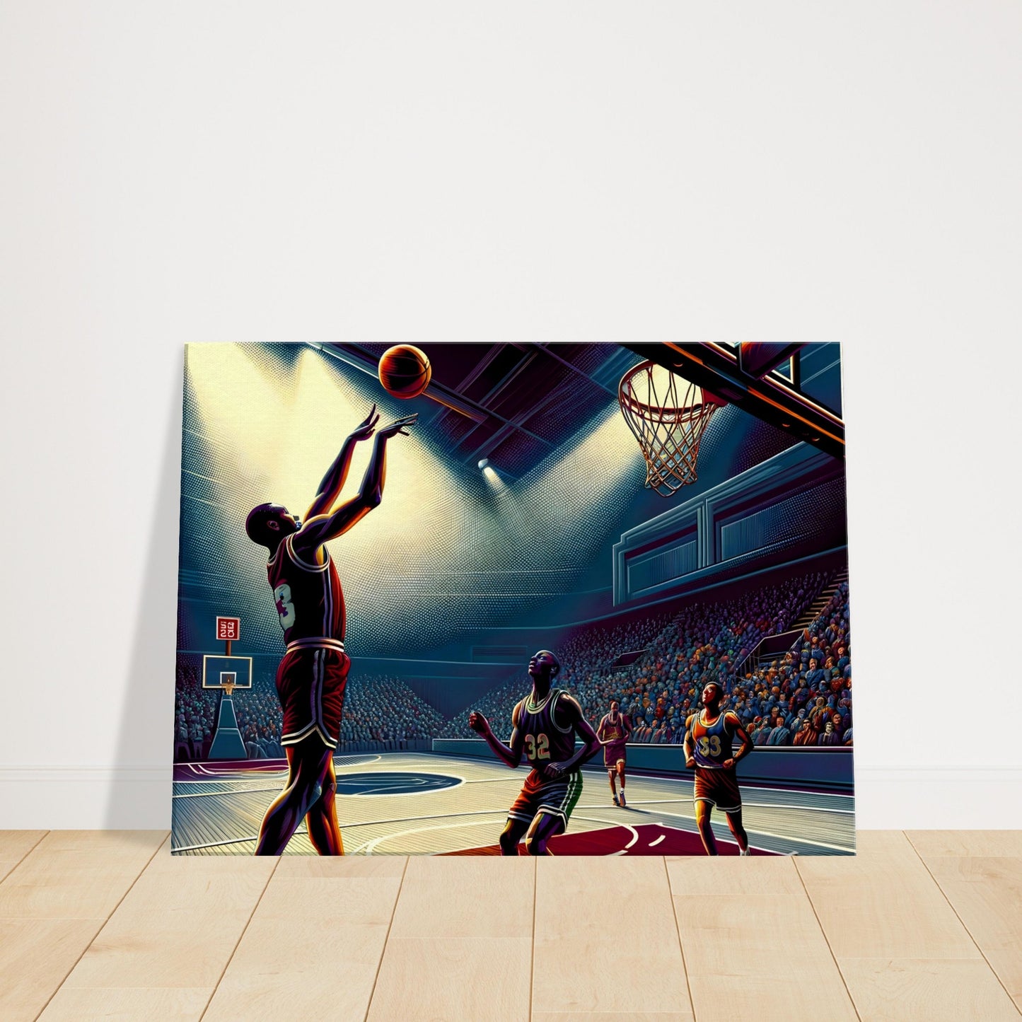 Take the Shot captures a moment suspended in time, the decisive release, the silent tension, the surge of hope as the ball arcs toward the hoop. The player, frozen in flawless form, radiates focus and finesse, while defenders linger just a breath too late. Vivid color contrasts and sharp perspective pull the viewer straight onto the court, immersed in the rhythm of the game. Beams of radiant light cascade from above, turning this fleeting second into a near-sacred act of athletic expression. Take the Shot isn’t just about the play, it’s about conviction, timing, and the artistry behind every point scored. A perfect addition for fans who understand that greatness lives in the milliseconds.
