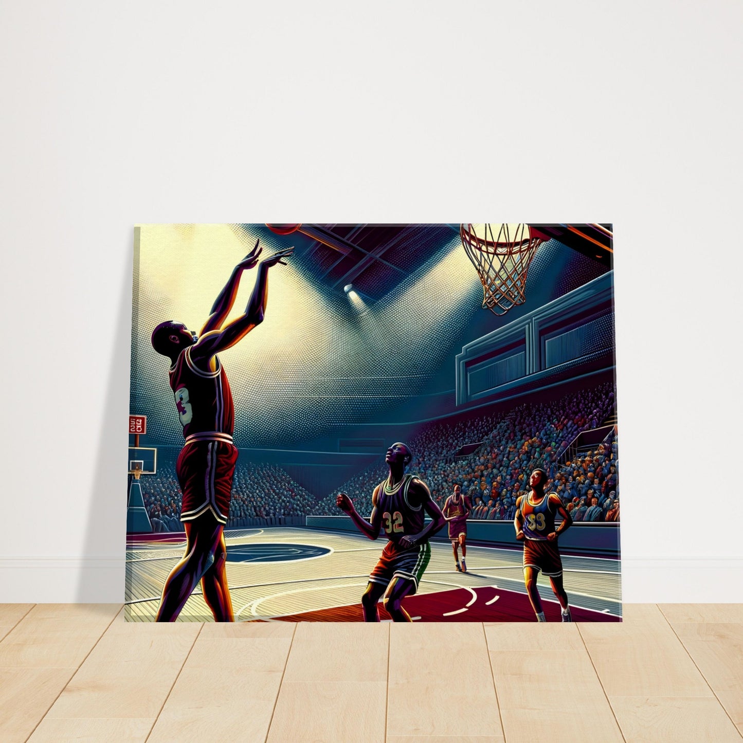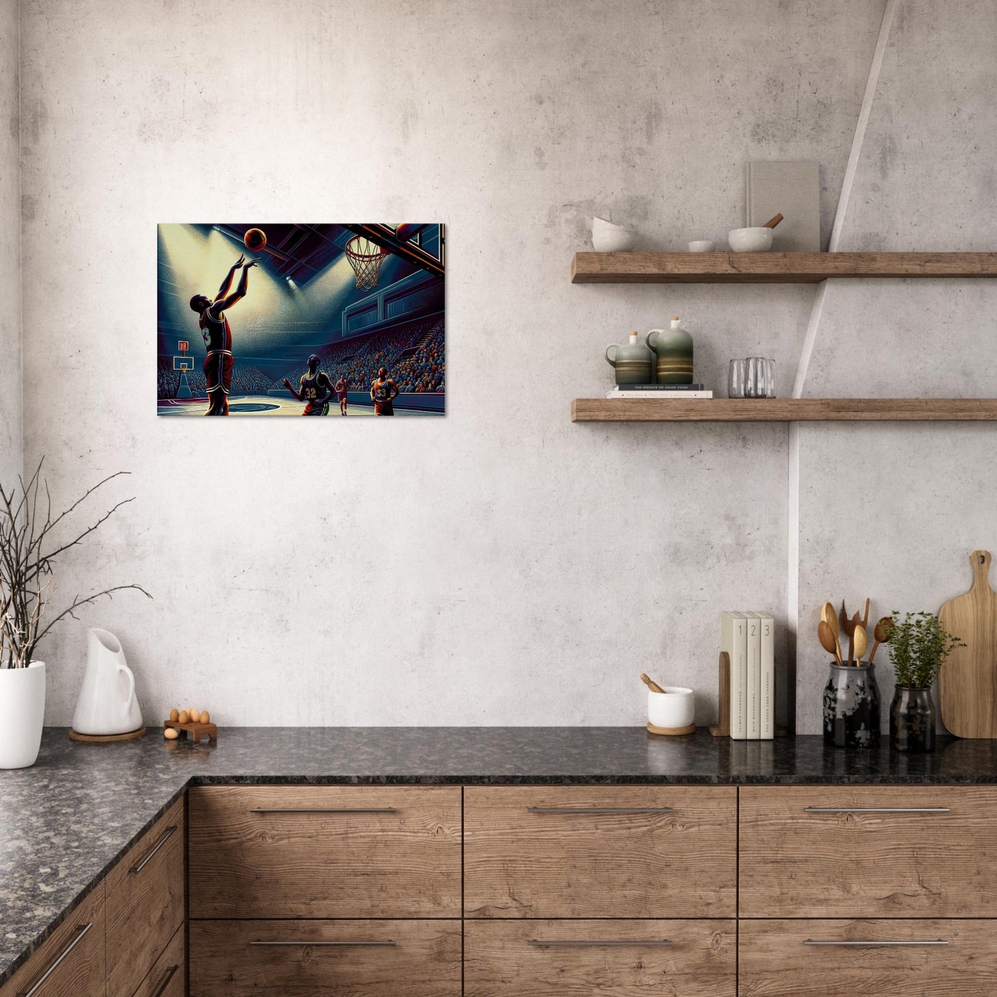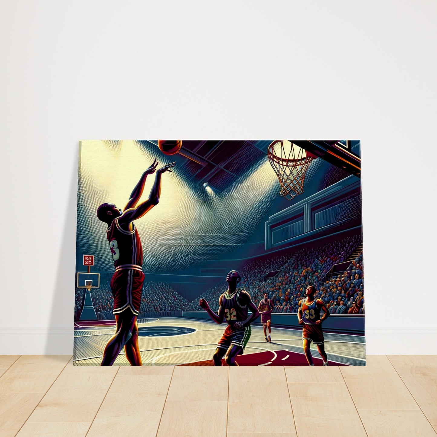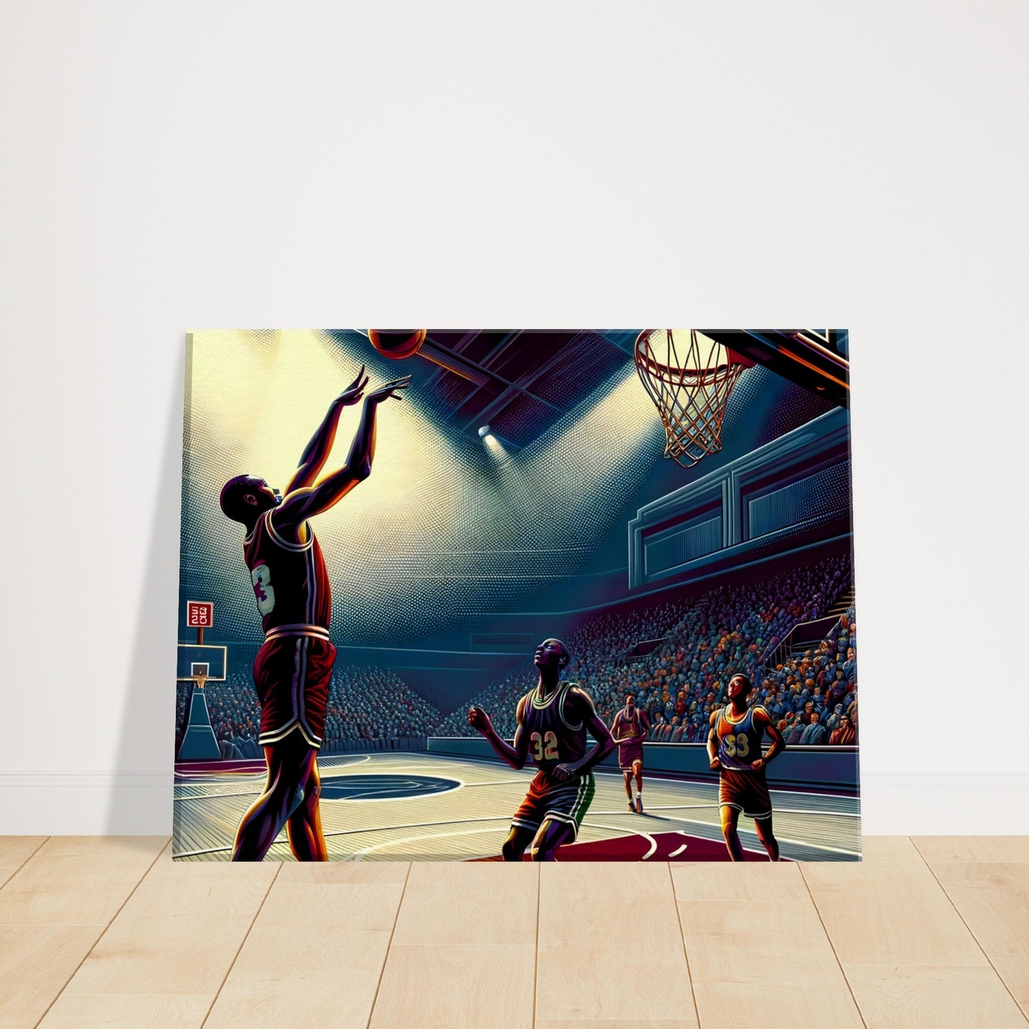 Take the Shot captures a moment suspended in time, the decisive release, the silent tension, the surge of hope as the ball arcs toward the hoop. The player, frozen in flawless form, radiates focus and finesse, while defenders linger just a breath too late. Vivid color contrasts and sharp perspective pull the viewer straight onto the court, immersed in the rhythm of the game. Beams of radiant light cascade from above, turning this fleeting second into a near-sacred act of athletic expression. Take the Shot isn’t just about the play, it’s about conviction, timing, and the artistry behind every point scored. A perfect addition for fans who understand that greatness lives in the milliseconds.
