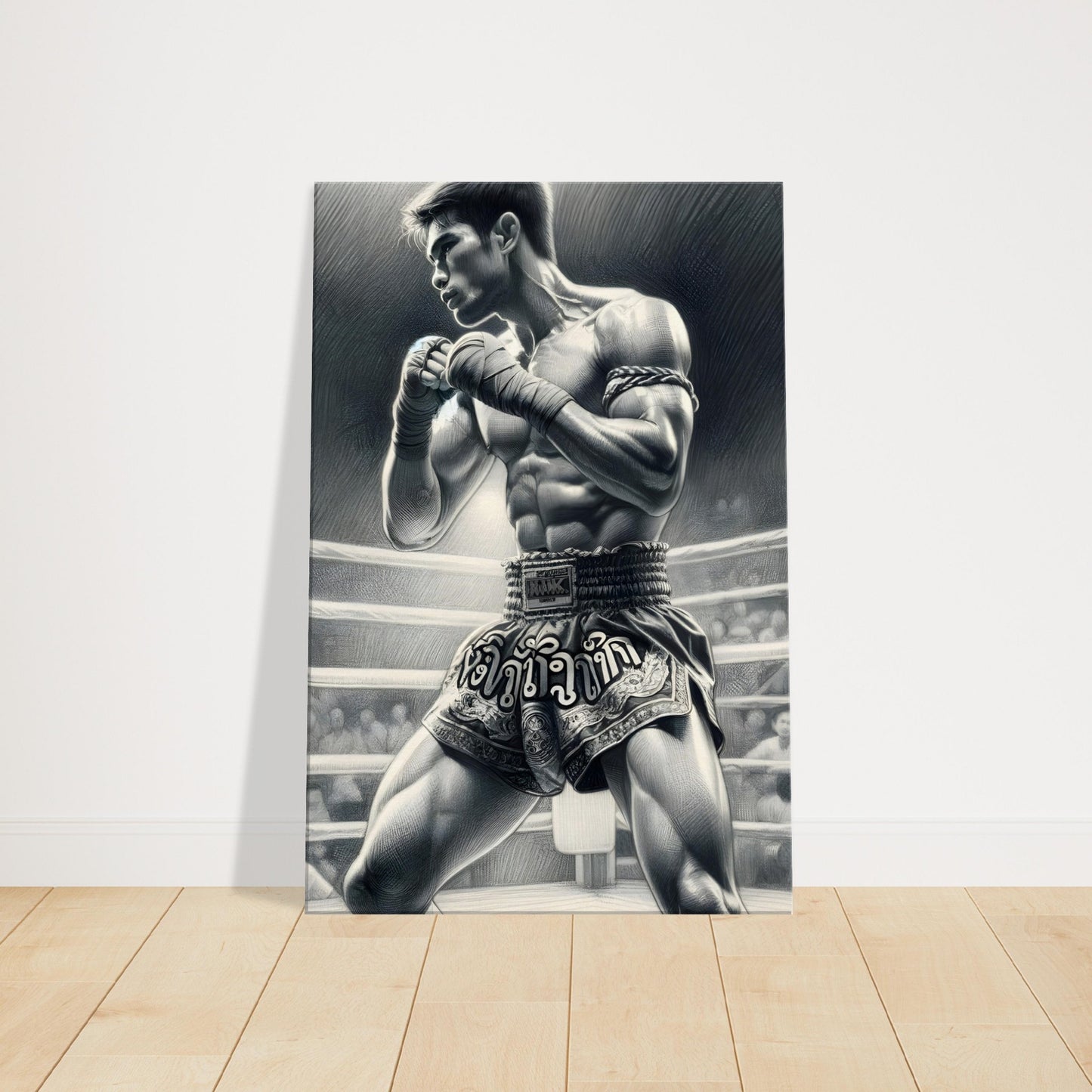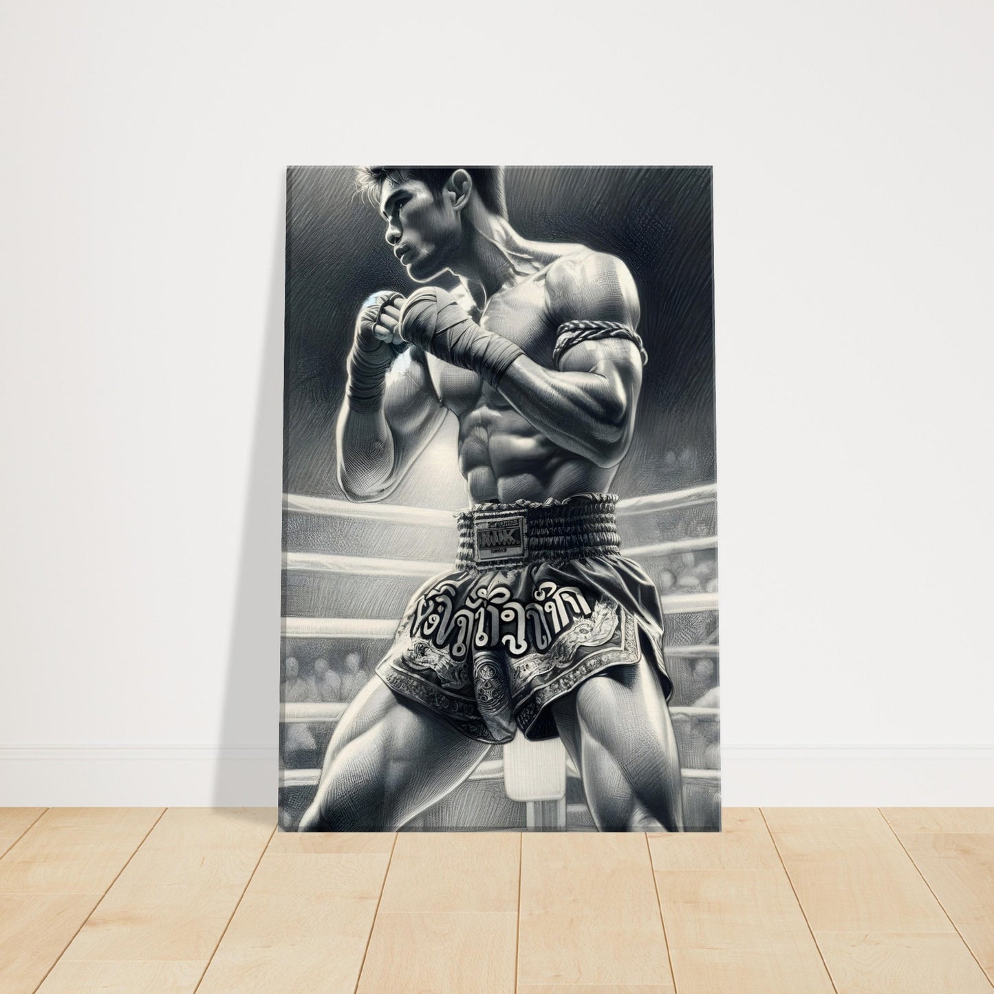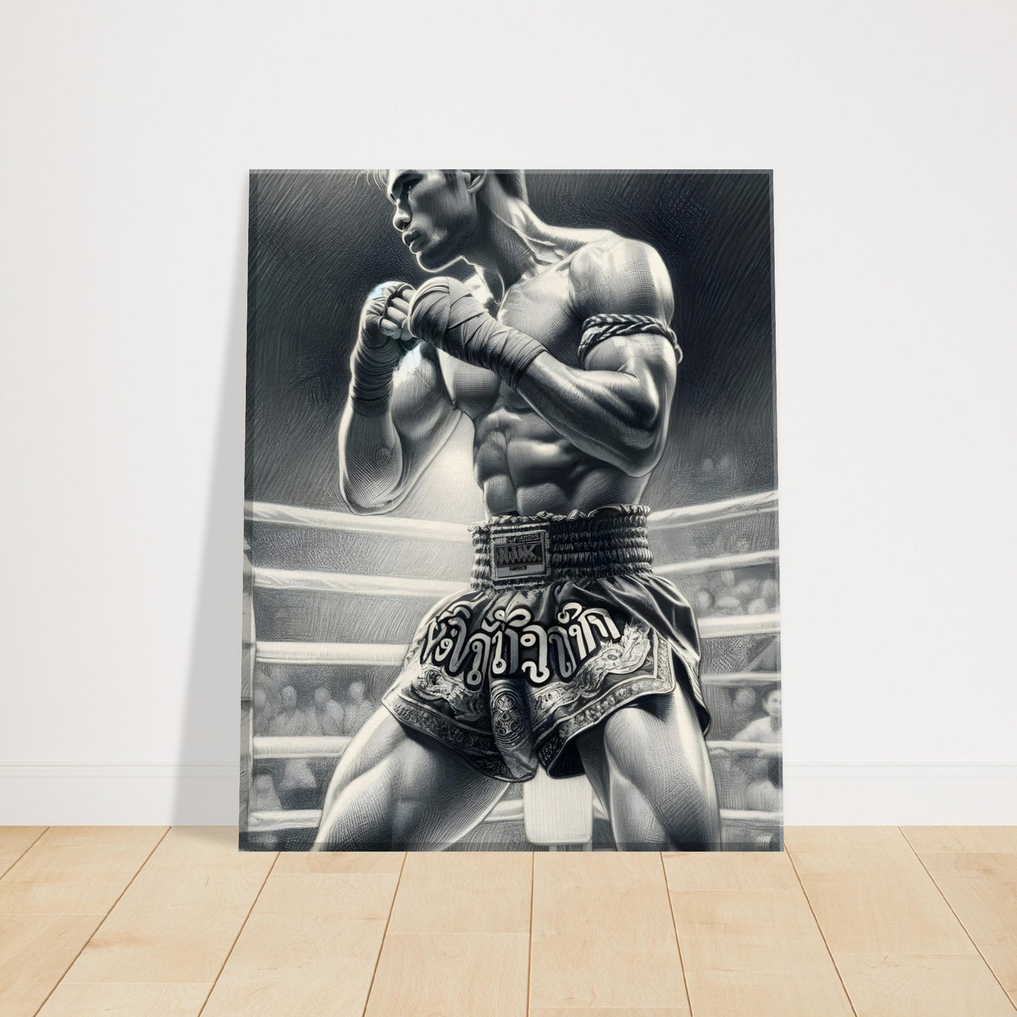 Poised in quiet intensity, Thai Fighter Sketch captures the raw focus and cultural depth of Muay Thai through the refined elegance of pencil illustration. The fighter stands centered in a traditional ring, his stance firm, his gaze unwavering, embodying the spirit of discipline and honor intrinsic to Thailand’s revered martial art. Every line and contour reveals the artist’s deep reverence for the form: the defined musculature, the flow of traditional wraps, and the calm before the explosive storm. Light and shadow interplay with striking subtlety, enhancing the sketch’s realism while maintaining a graceful simplicity. Printed on premium canvas, Thai Fighter Sketch is a timeless homage to strength, focus, and the profound tradition of Muay Thai.