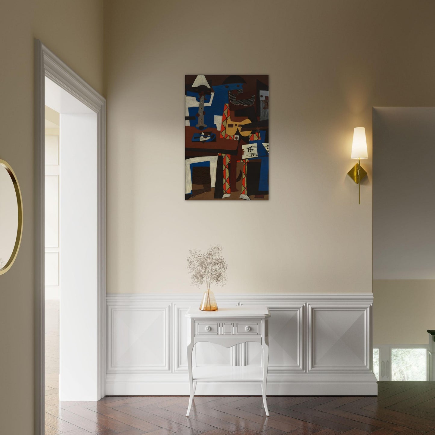 Step into the bold world of Cubism with Pablo Picasso’s Three Musicians. This vibrant canvas print features a rhythmic blend of shapes, colour, and abstraction, capturing three stylised figures in perfect visual harmony.