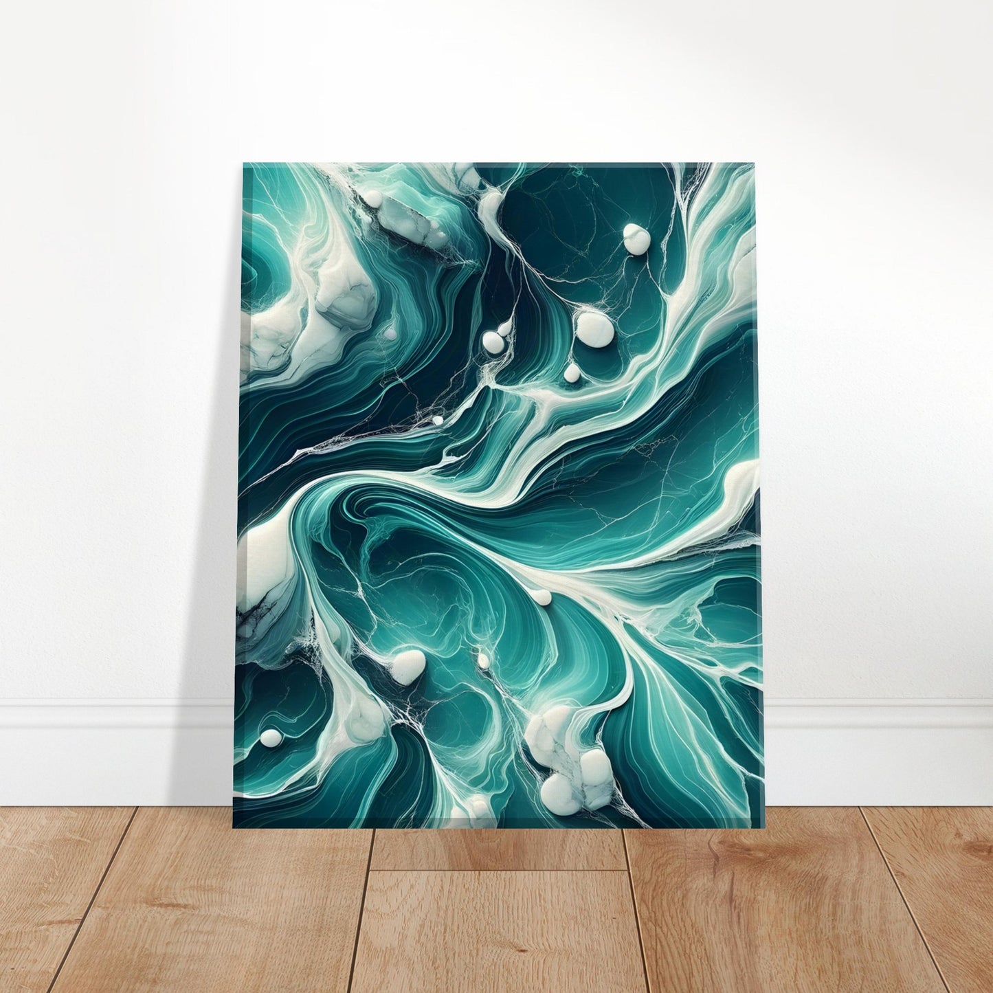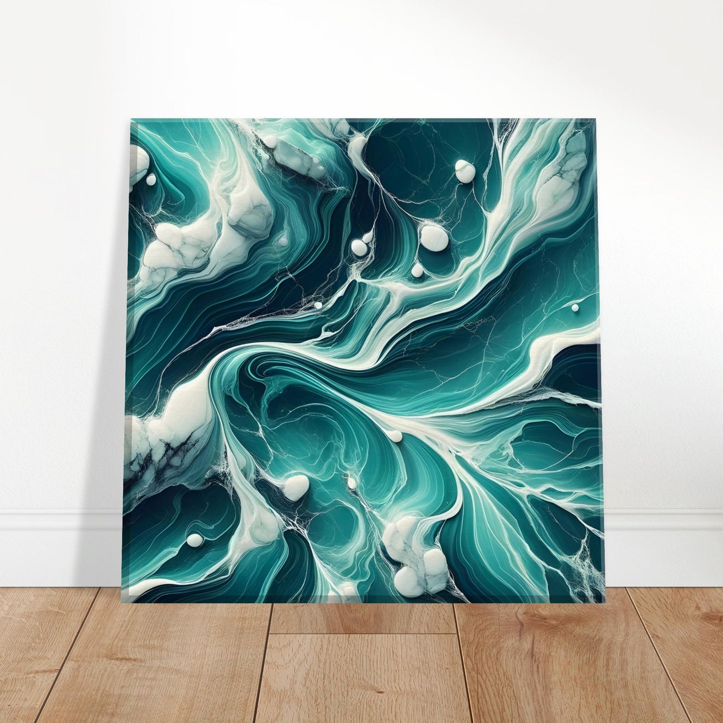 Tropical Teal Marble channels the vivid energy and serenity of sunlit ocean depths. A bold teal background surges with dynamic swirls of bright white and gleaming silver, mimicking the movement of tropical waters kissed by light. Its polished finish intensifies the richness of the teal and the brilliance of the veining, creating a stunning visual flow full of contrast and life.