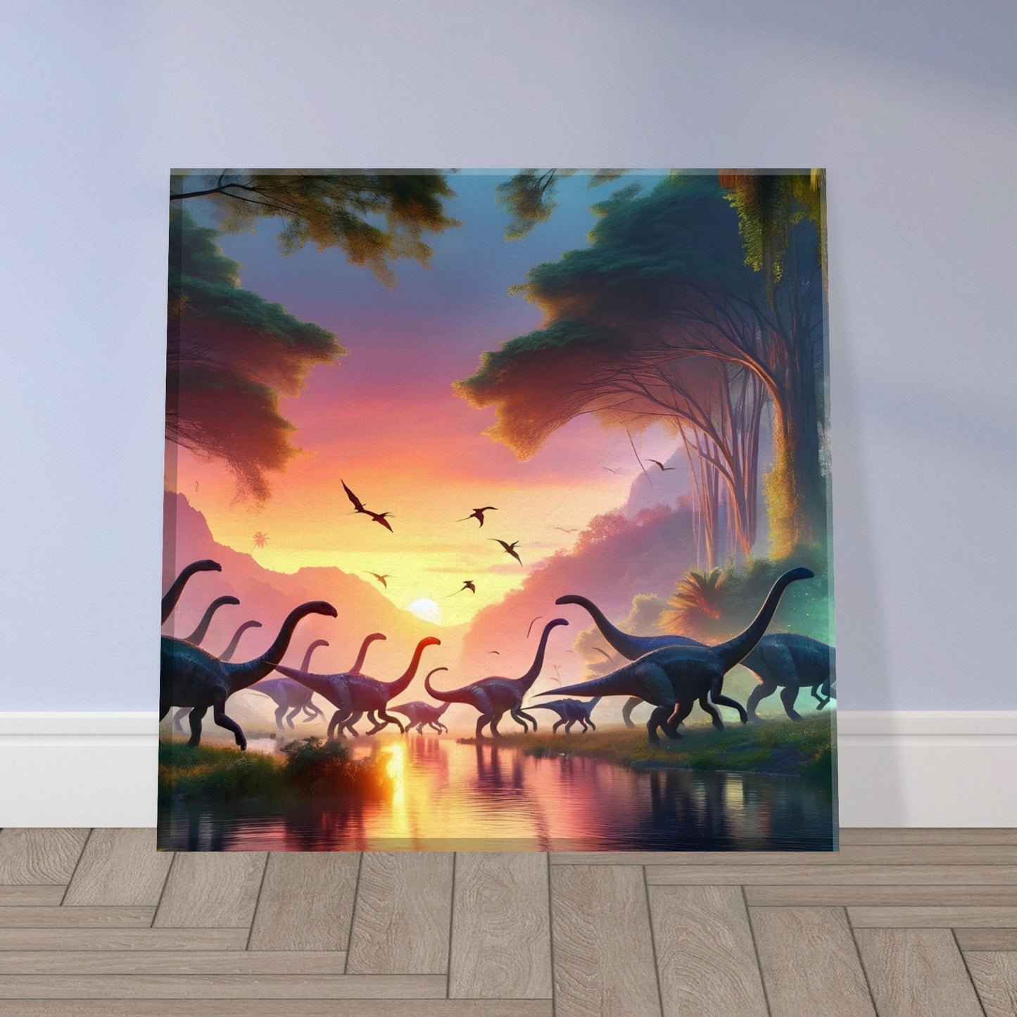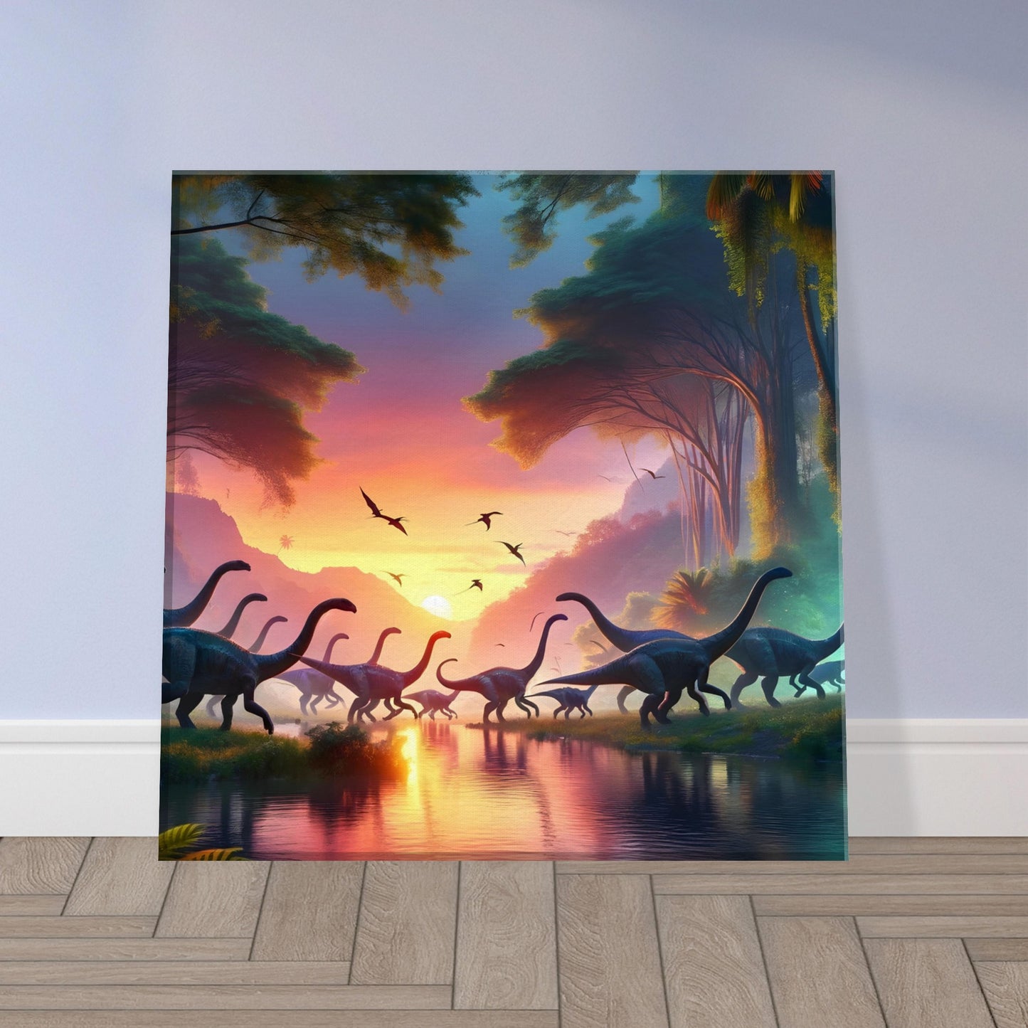 Twilight by the River - Dinosaur Canvas Wall Art Print
