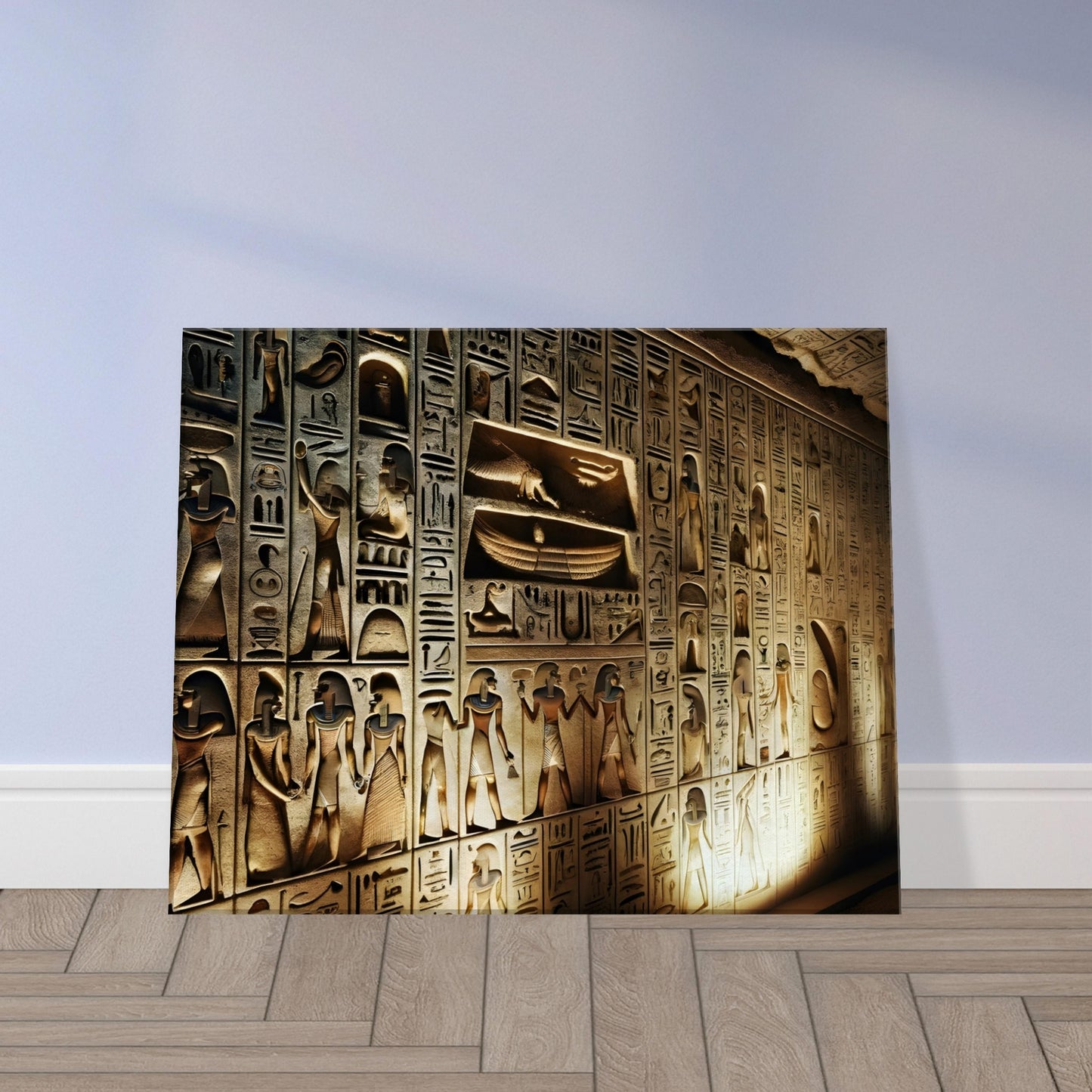 Whispers from the Pharaoh’s Tomb immerses you in the hushed reverence of an ancient resting place, where walls speak in the sacred script of a long-lost world. Illuminated by the flickering glow of imagined torchlight, intricate hieroglyphics unfurl across the tomb’s stone surface, each symbol a quiet testament to daily life, divine ritual, and the eternal bond between pharaohs and their gods. Vivid scenes emerge: offerings to deities, ceremonial processions, and moments of profound devotion, all preserved in exquisite detail. These silent inscriptions echo through the ages, guiding the viewer along the spiritual and cultural journey of a civilization that flourished on the banks of the Nile. Whispers from the Pharaoh’s Tomb is more than an artwork, it is a portal into ancient wisdom, ritual, and the sacred rhythm of eternity.
