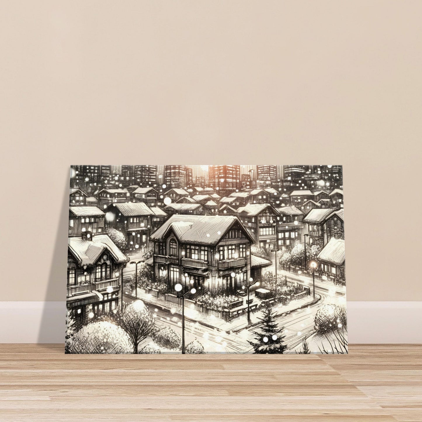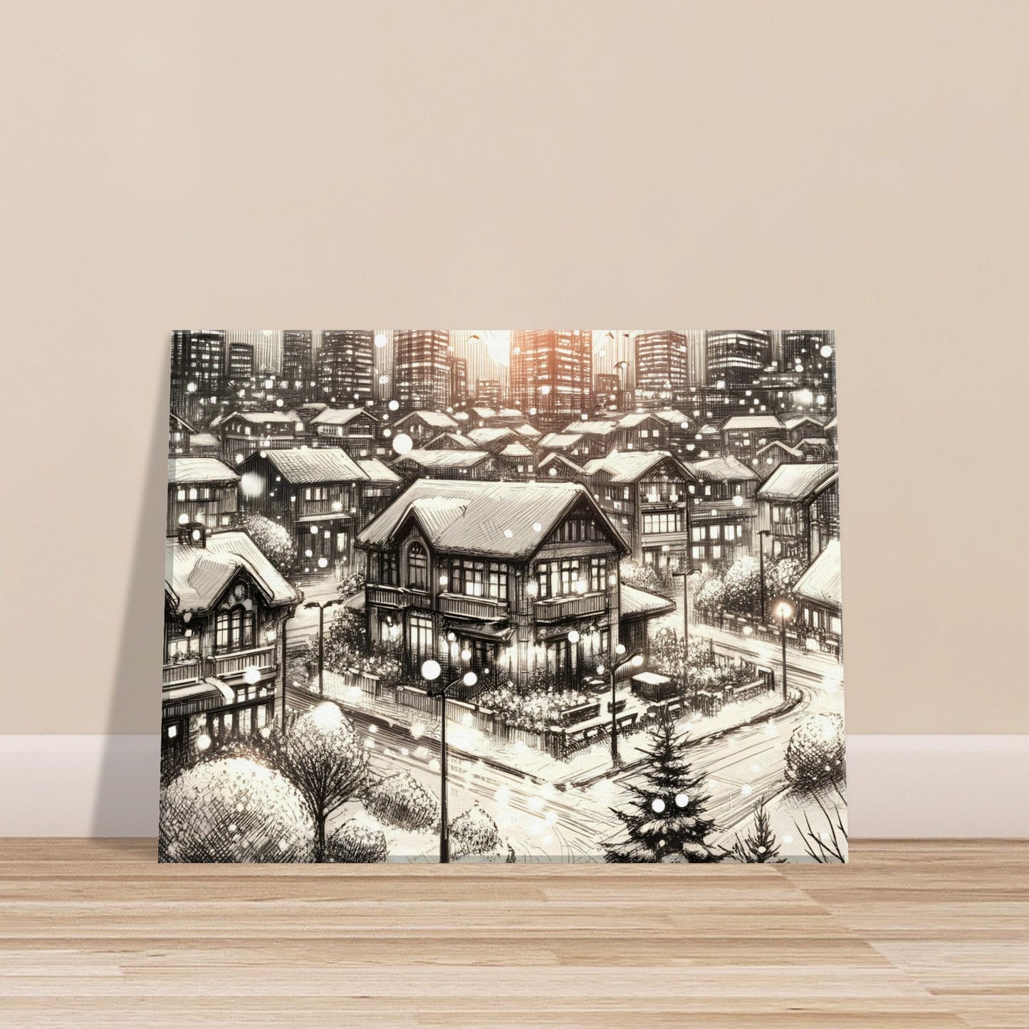 Winter Cityscape at Dusk Sketch - Landscape Canvas Wall Art Print